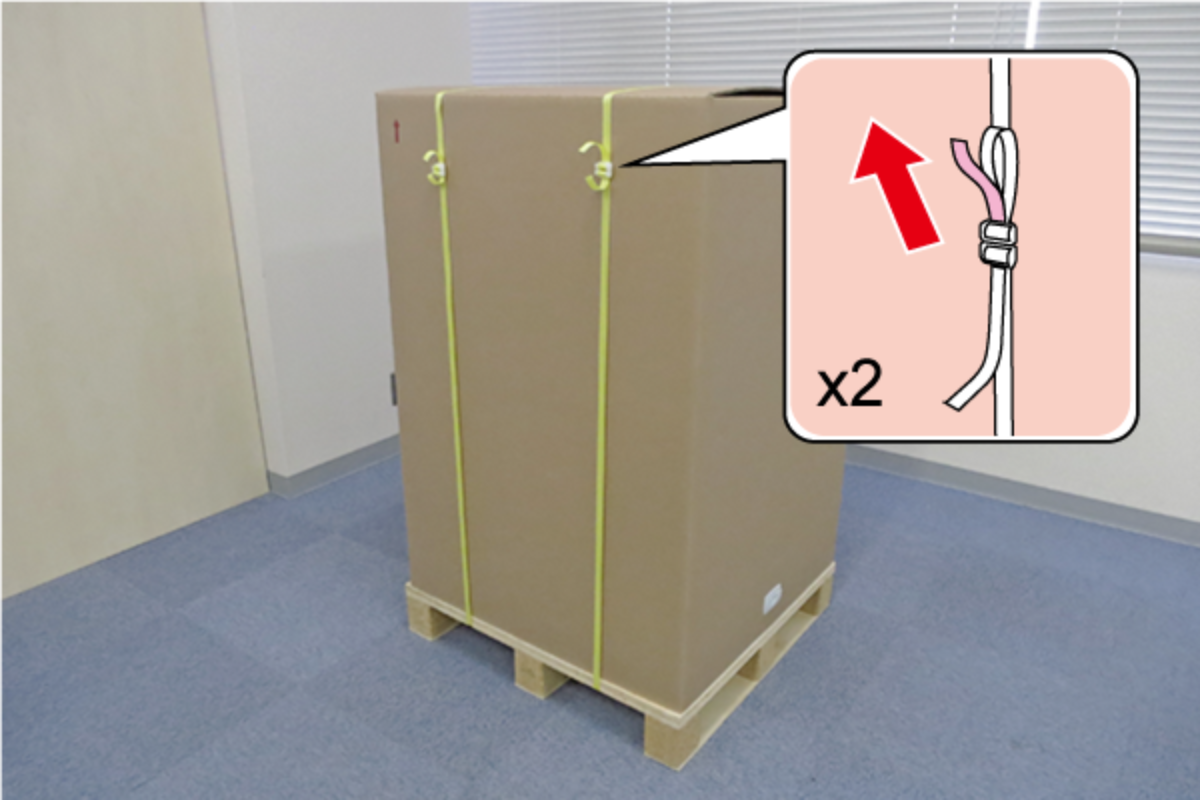 握住环形侧PP固定带的端部并向上提,以拆下两条PP固定带。