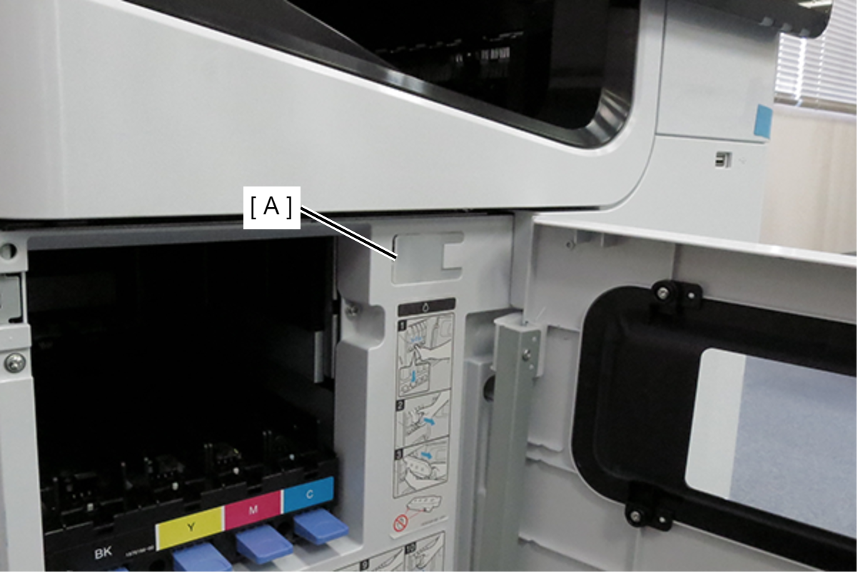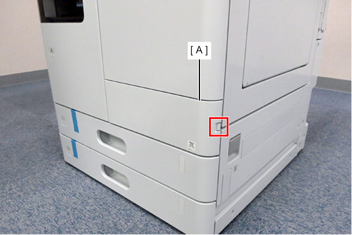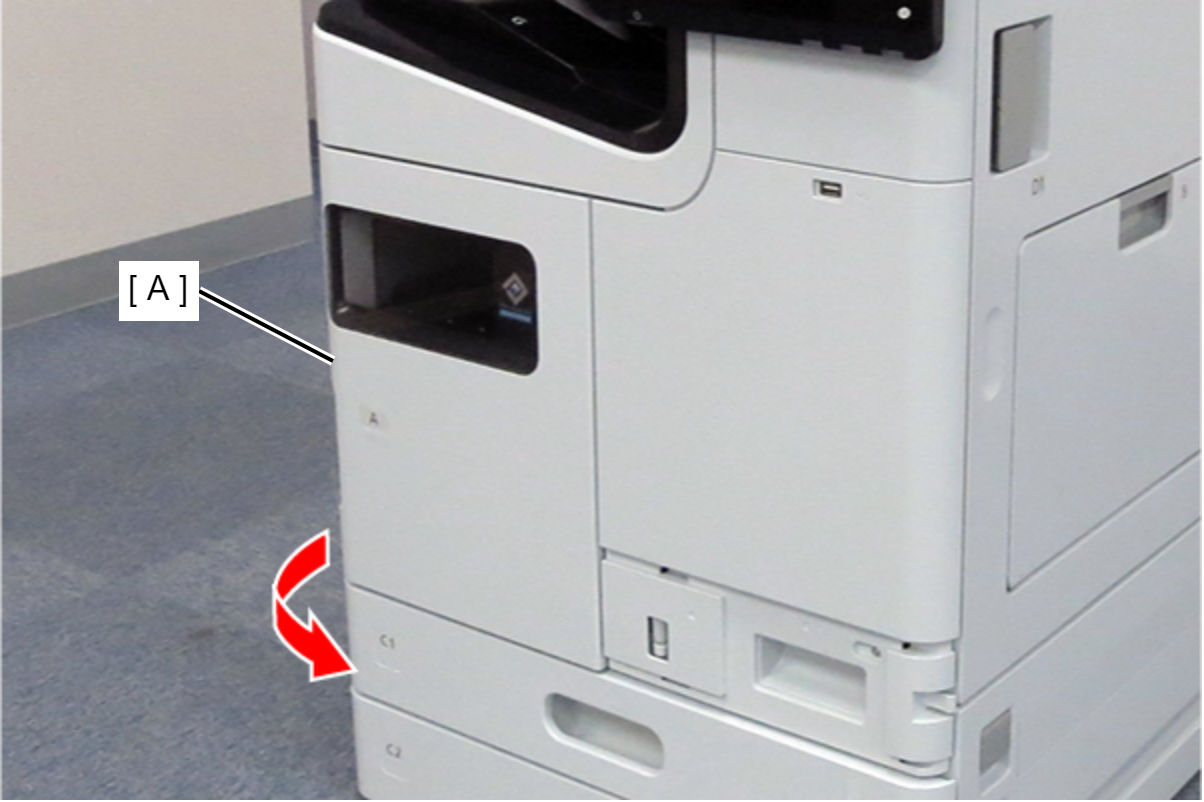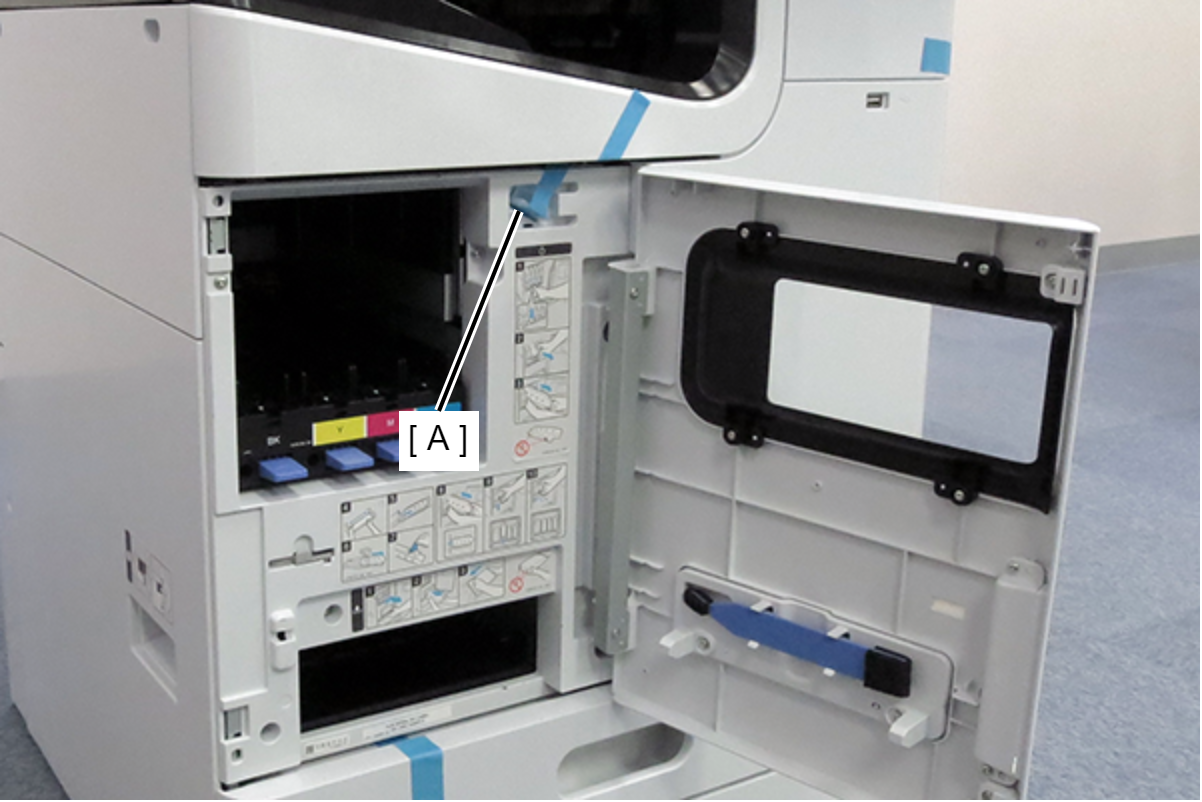 - 将从C1纸盒拆下的维护箱(A)安装到主机。