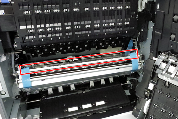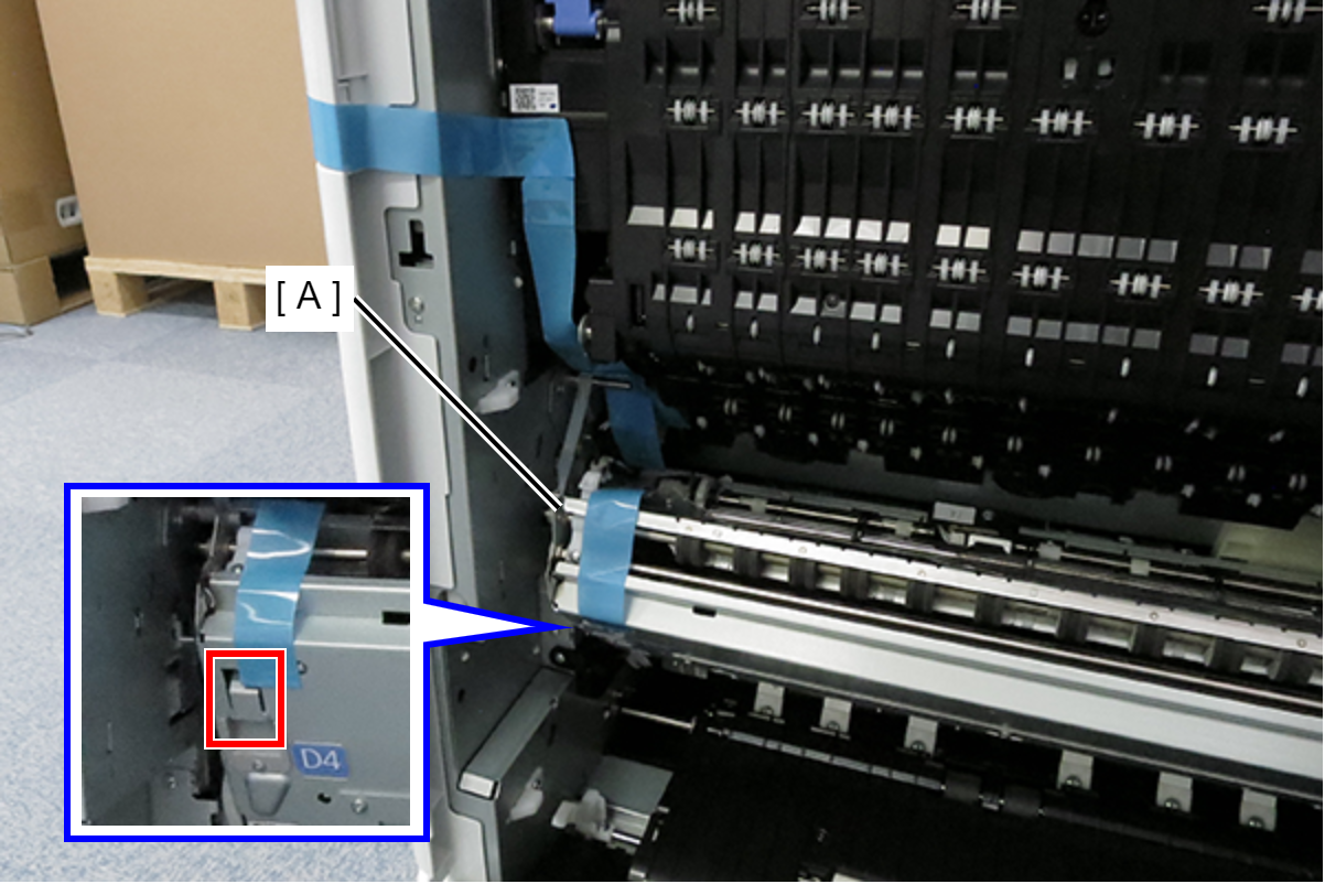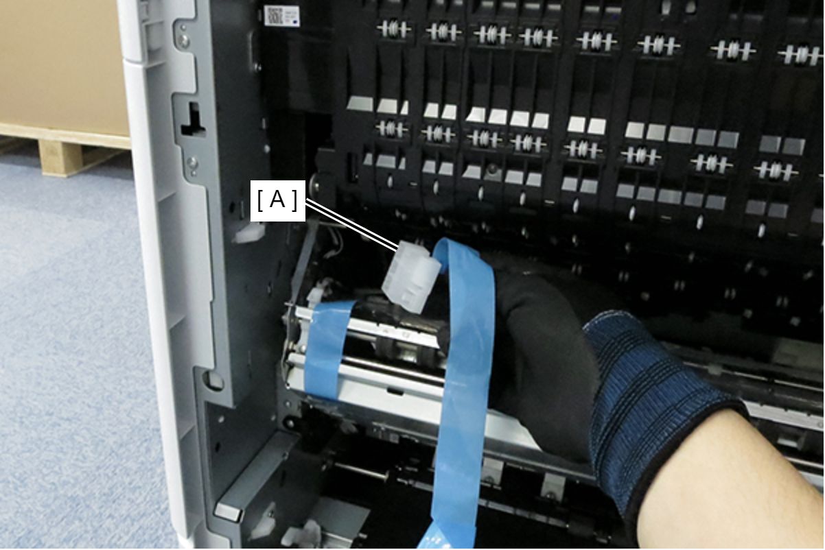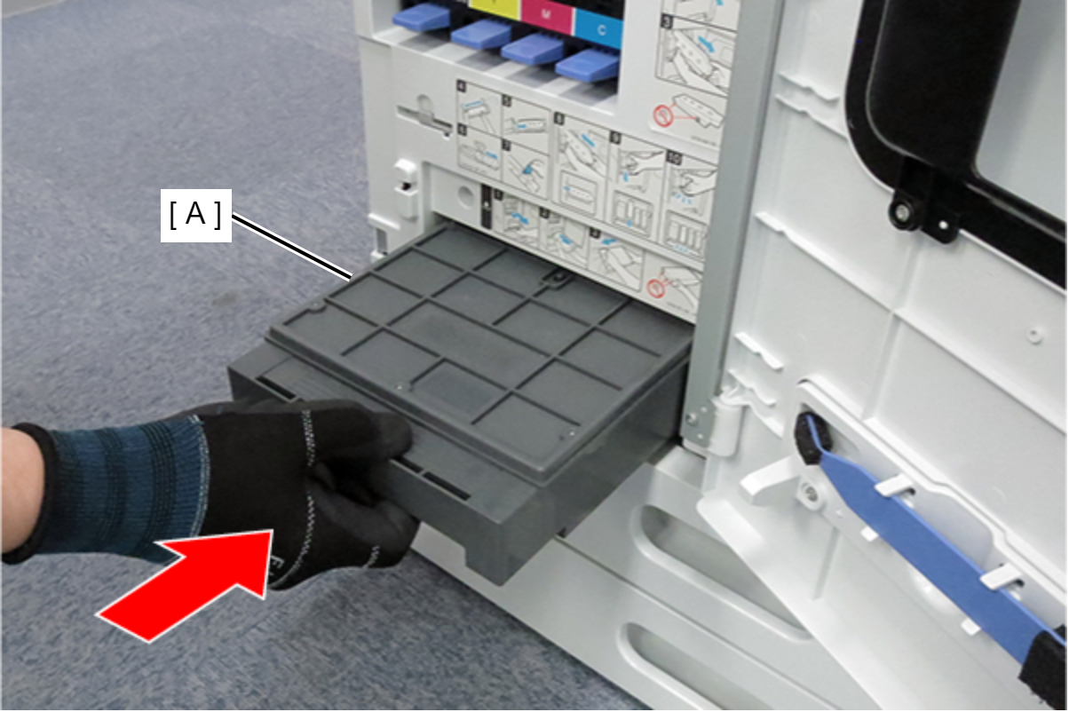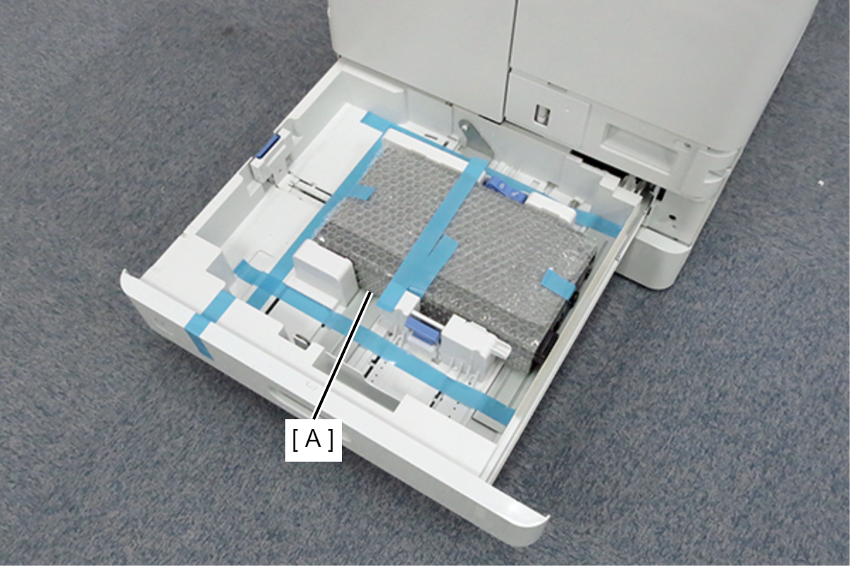- 将从C1纸盒拆下的维护箱(A)安装到主机。
