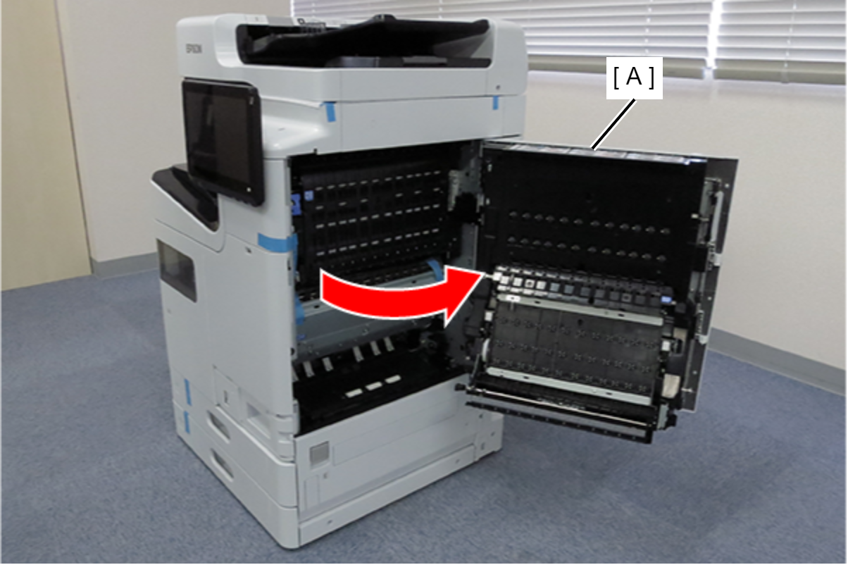 Note / 補足- 可以通过打开右门或向自己的方向拉胶带,拆下右门(A)的运输保护件。