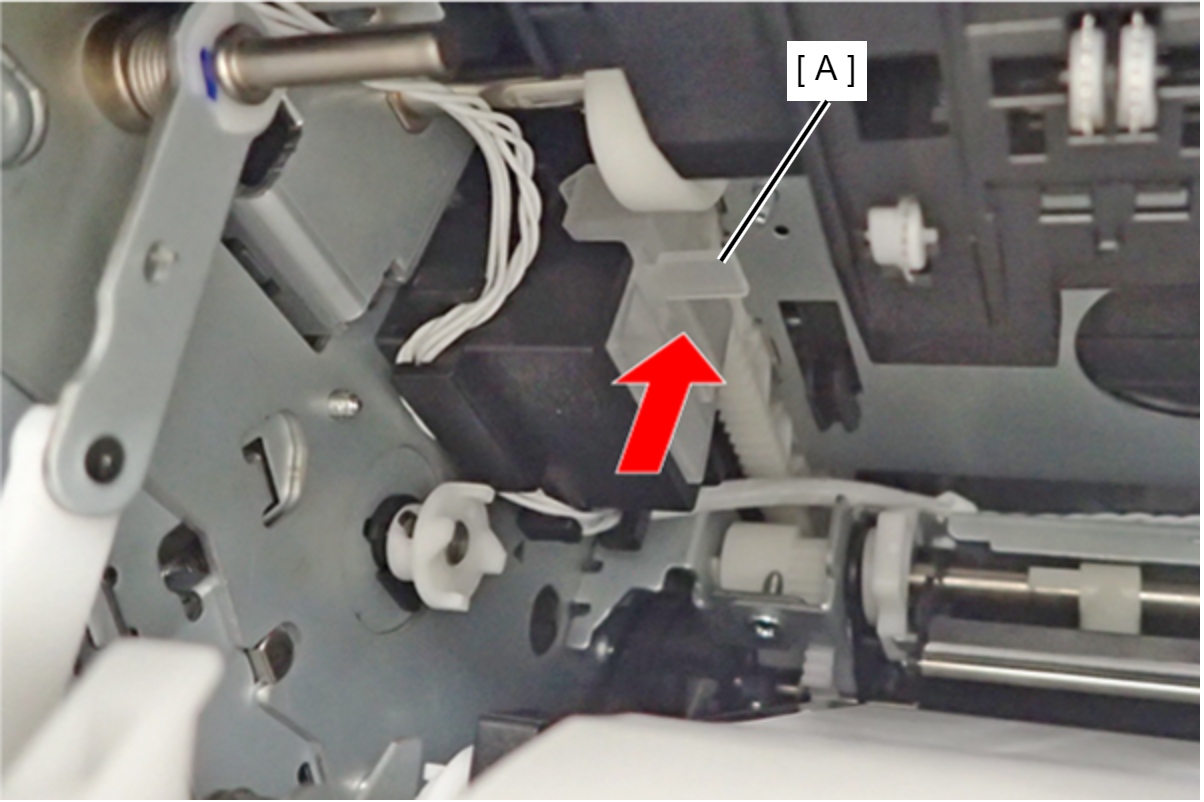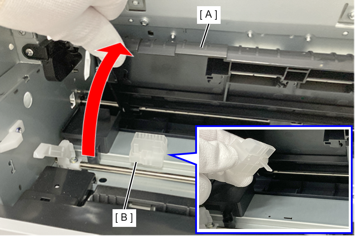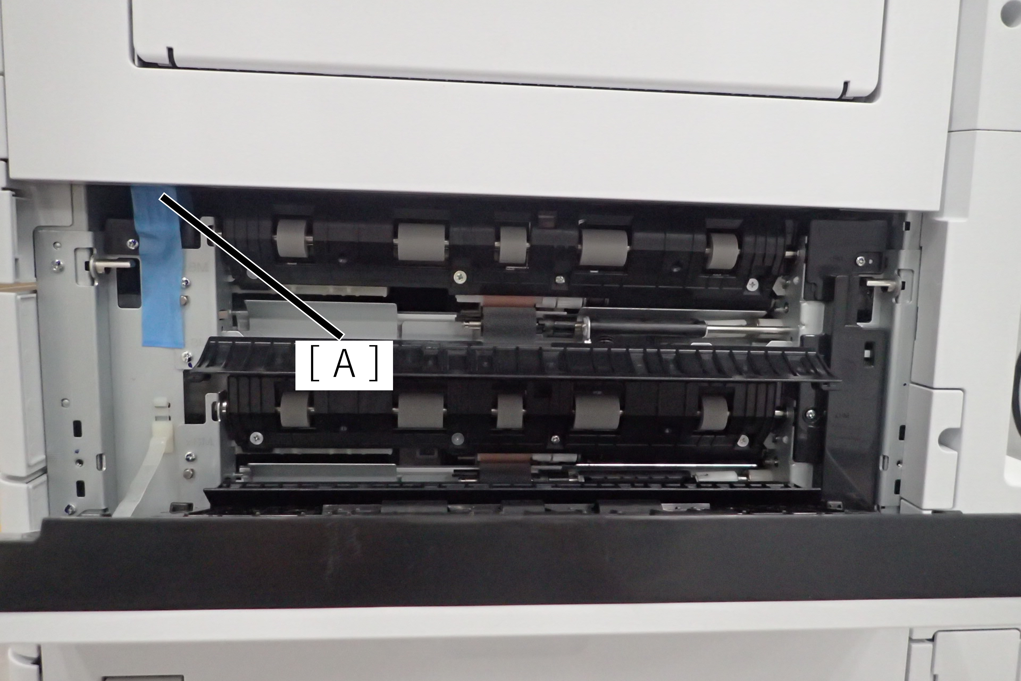 - 拉动控制杆,轻轻打开皮带单元(A)。