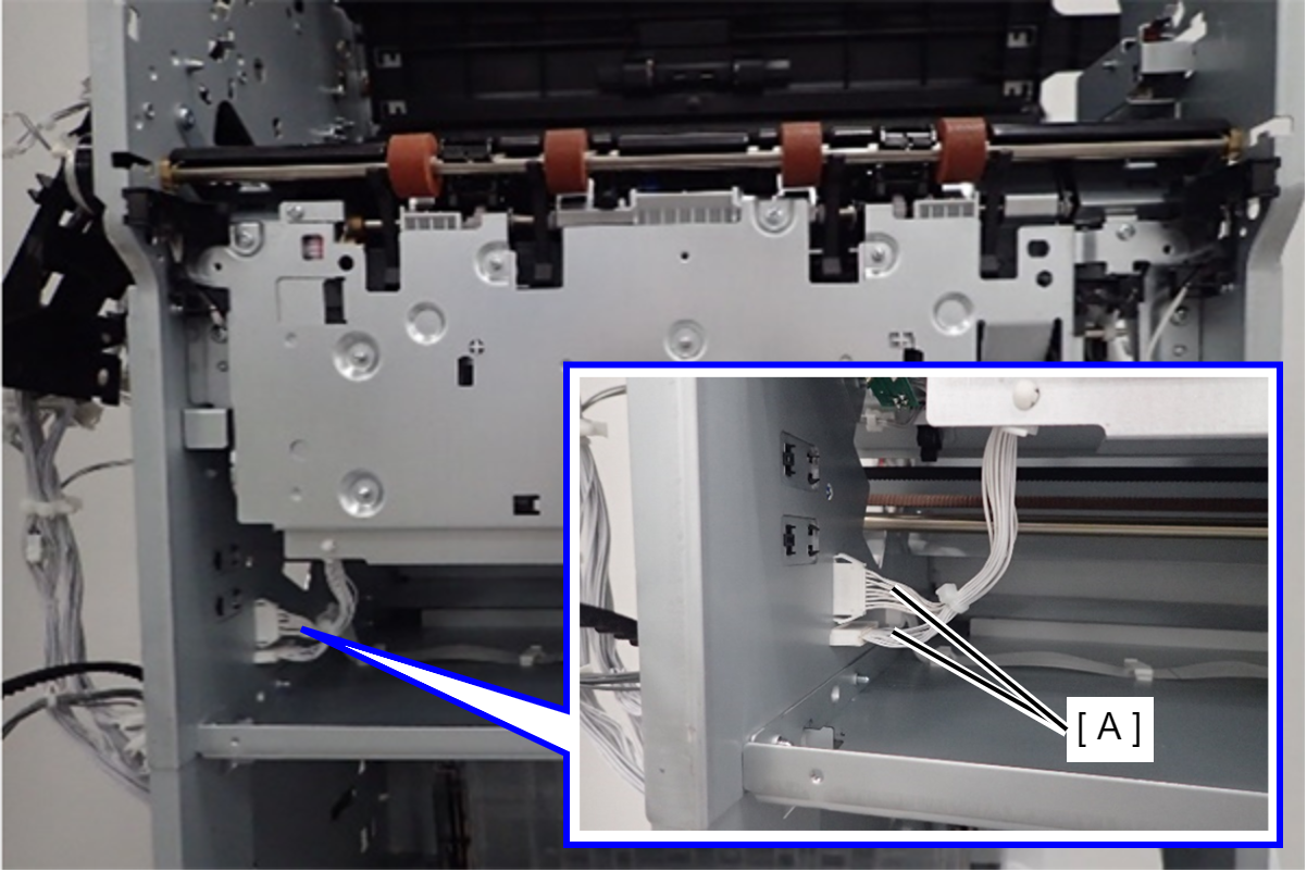 - 从产品后侧的继电器连接器(x2)拆下电缆(x2)(A)。