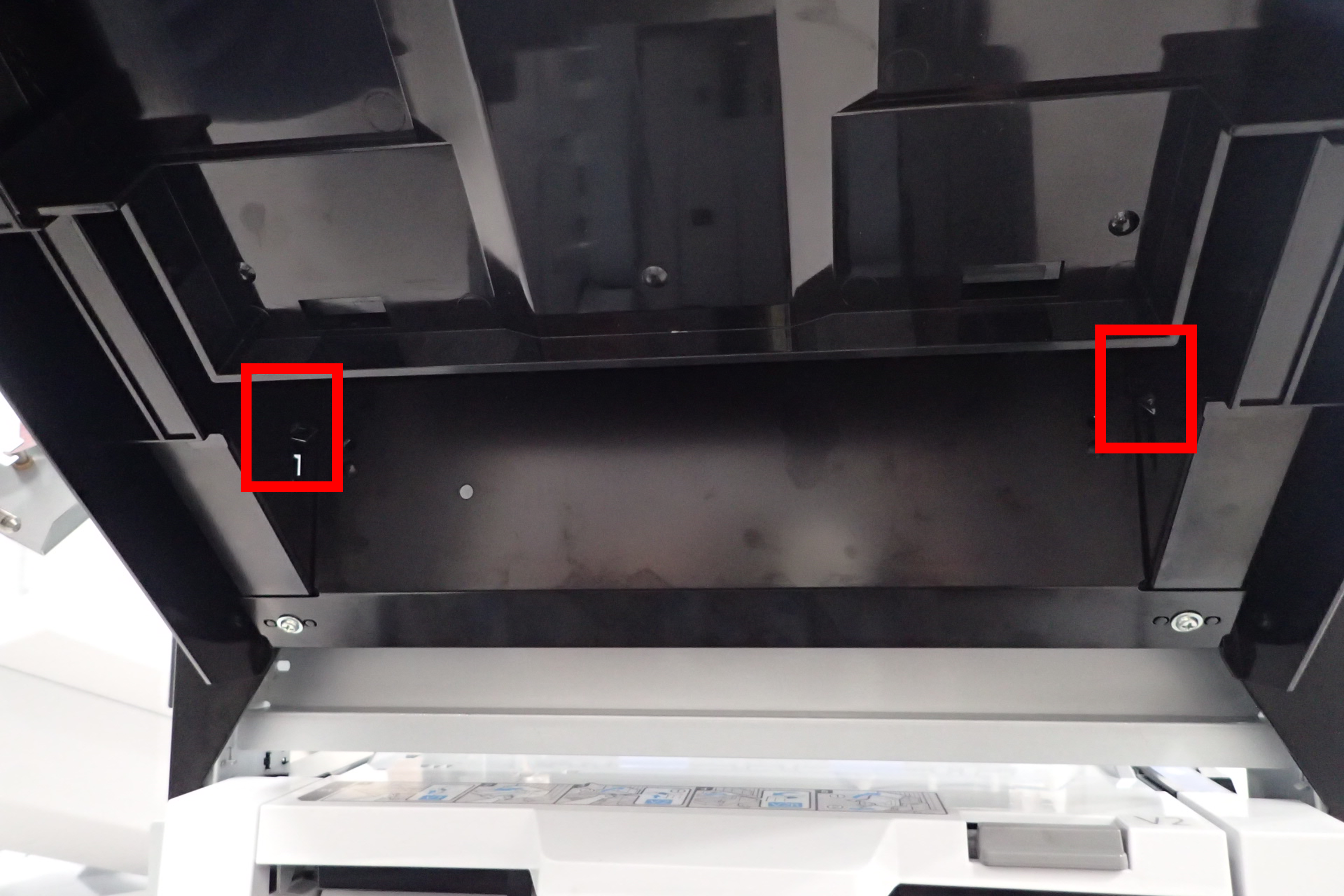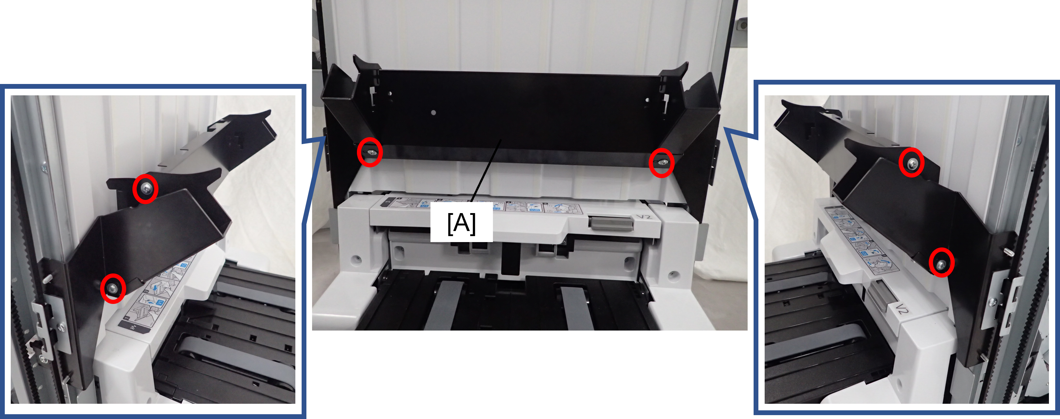 拆下2颗螺丝,然后倾斜下文档出纸盖(A)。(SX: