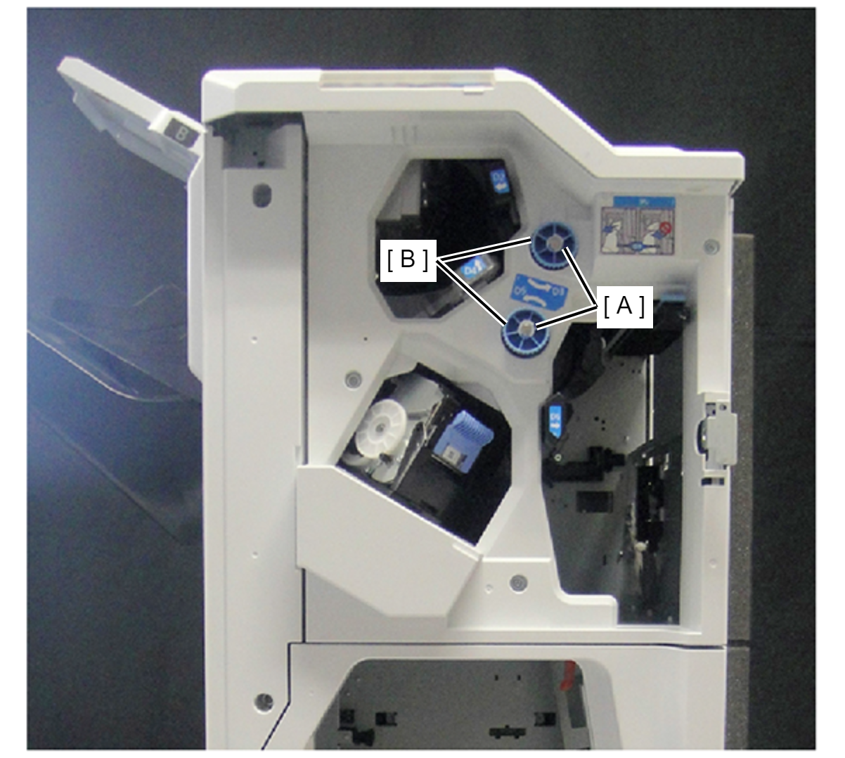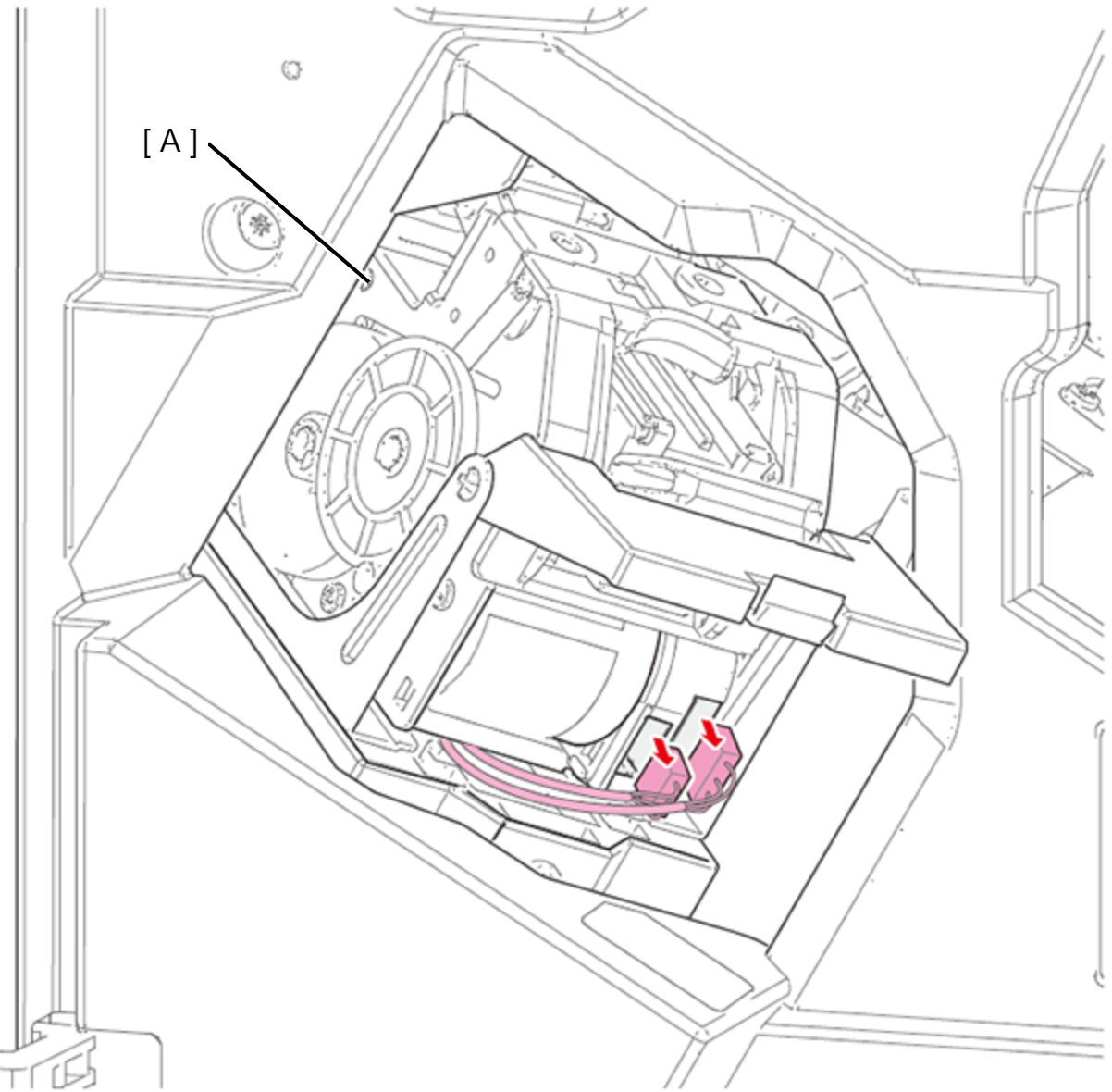 - 拆下装订器单元(A)的2个连接器。