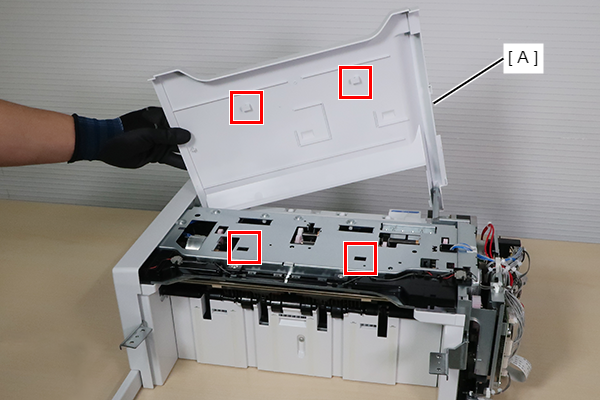 - 拆下将上部单元(A)固定到后侧的1颗螺丝。(SX: