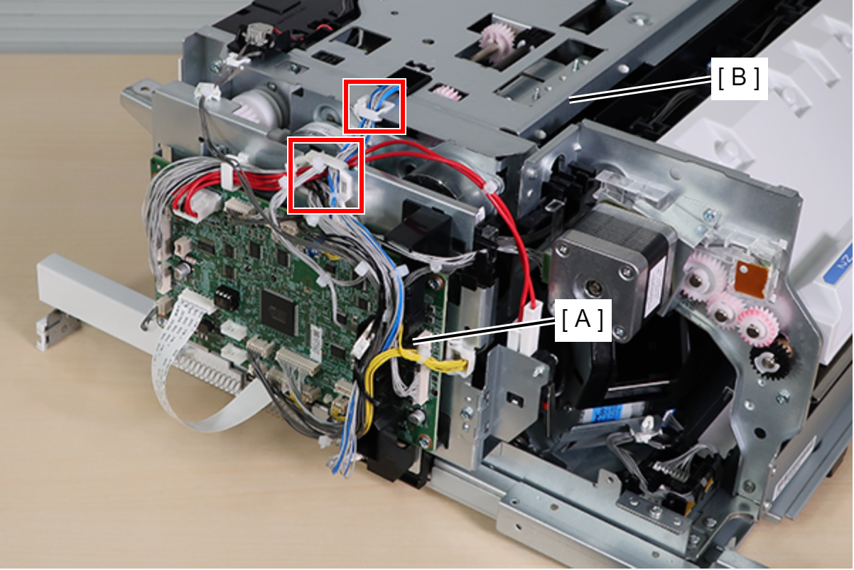 - 从主板(A)上的连接器(YC24、YC18)断开电缆(B)。
