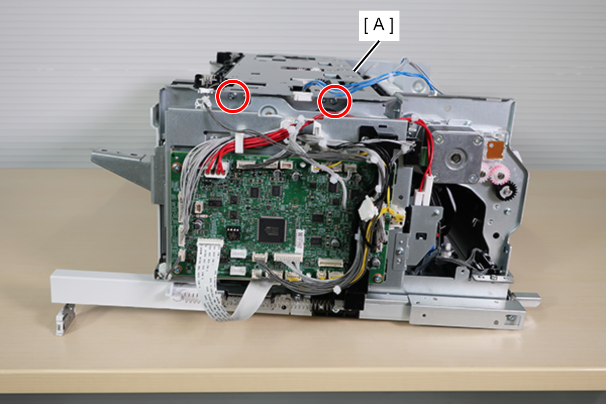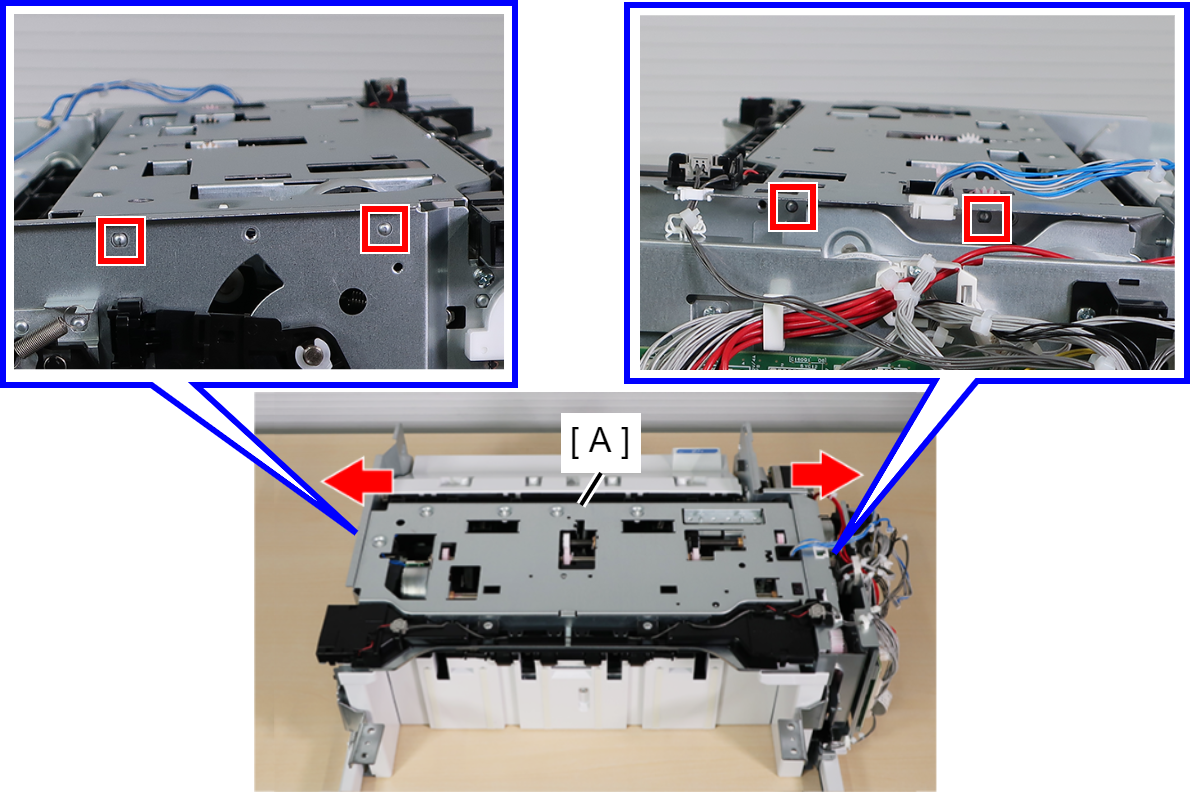 - 拆下将上部单元(A)固定到前侧的2颗螺丝。(SX: