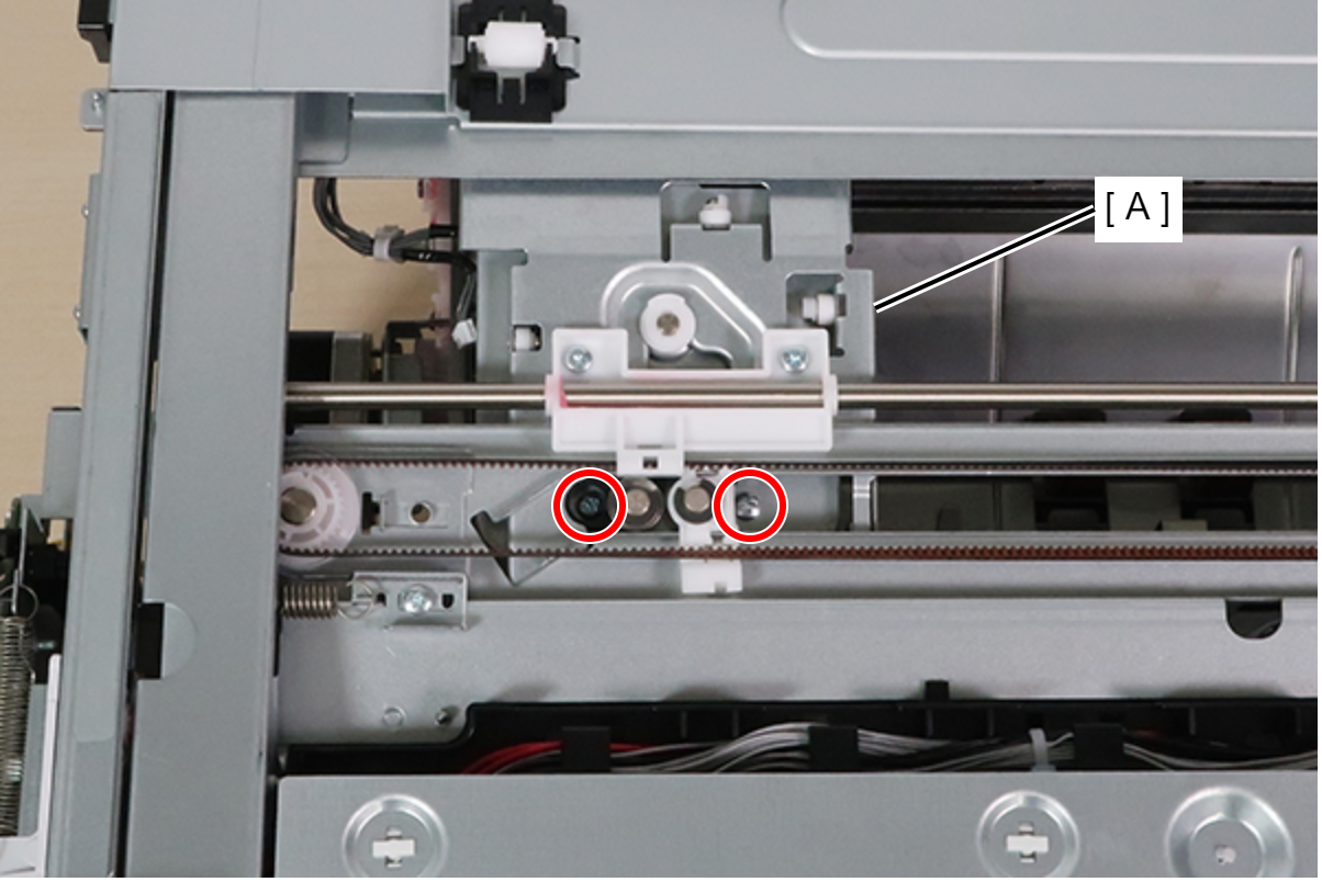 - 拆下固定装订器单元(A)的2颗螺丝。(SX: