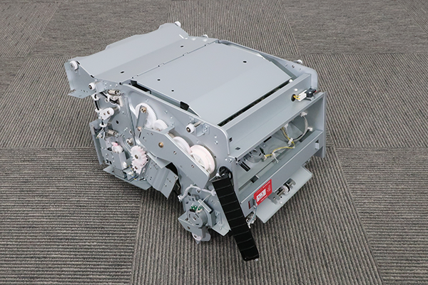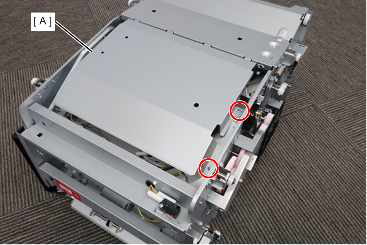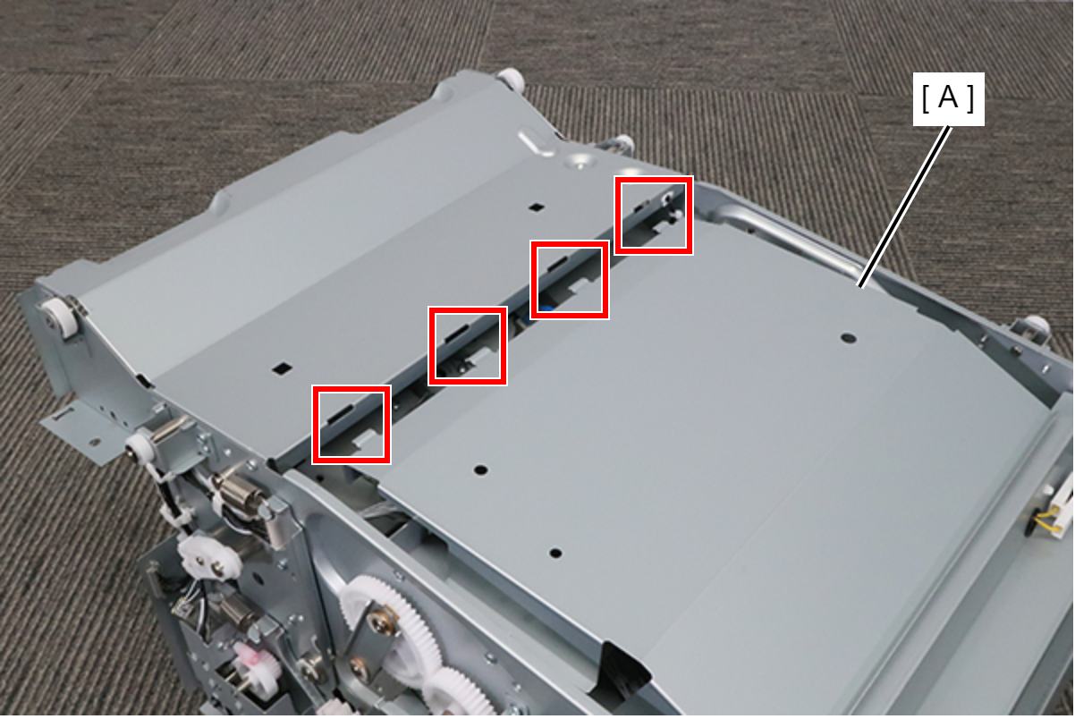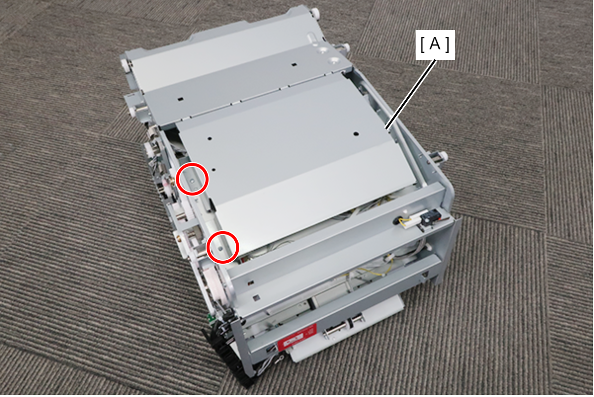 - 翻转鞍式装订单元,使鞍式装订单元底朝上。