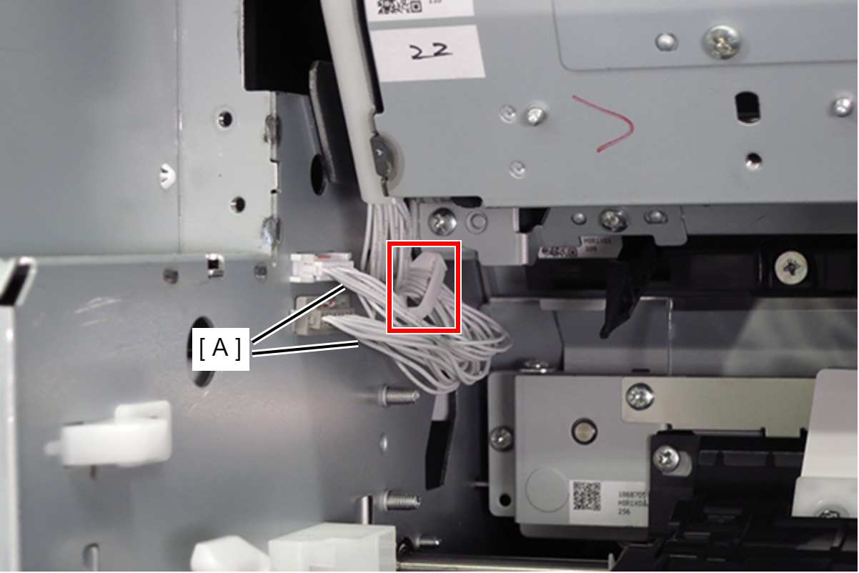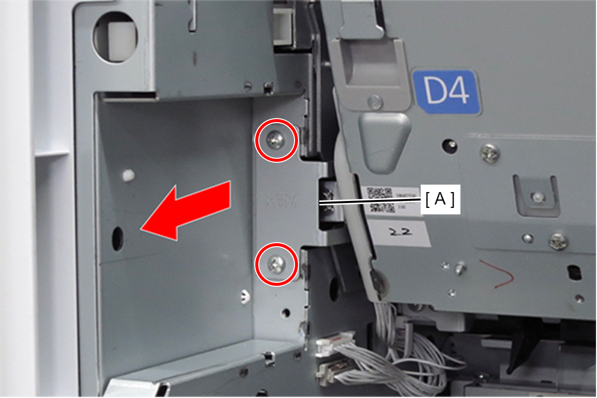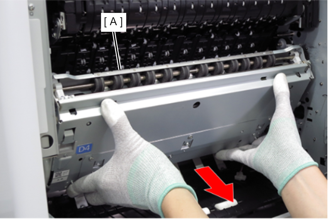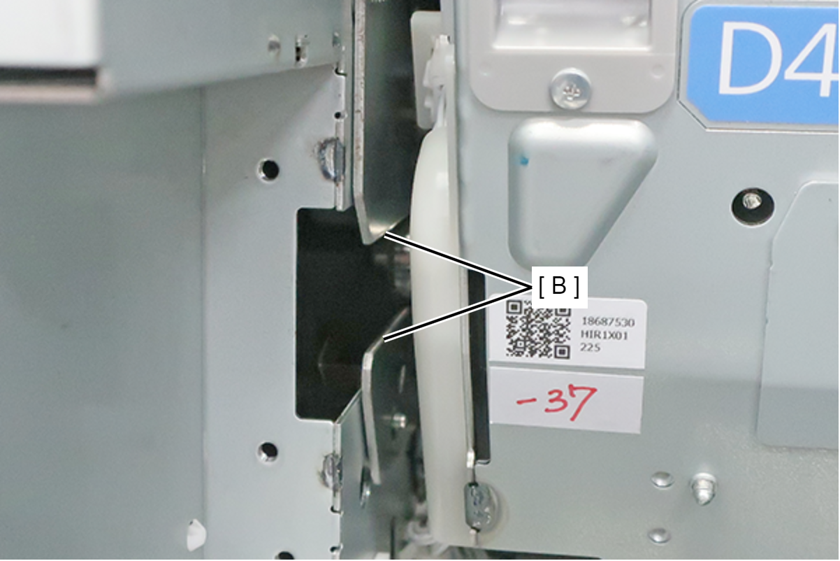 Caution / 注意当皮带支架拆下、皮带单元从正常位置降低时,不要关闭右门单元(D1)。