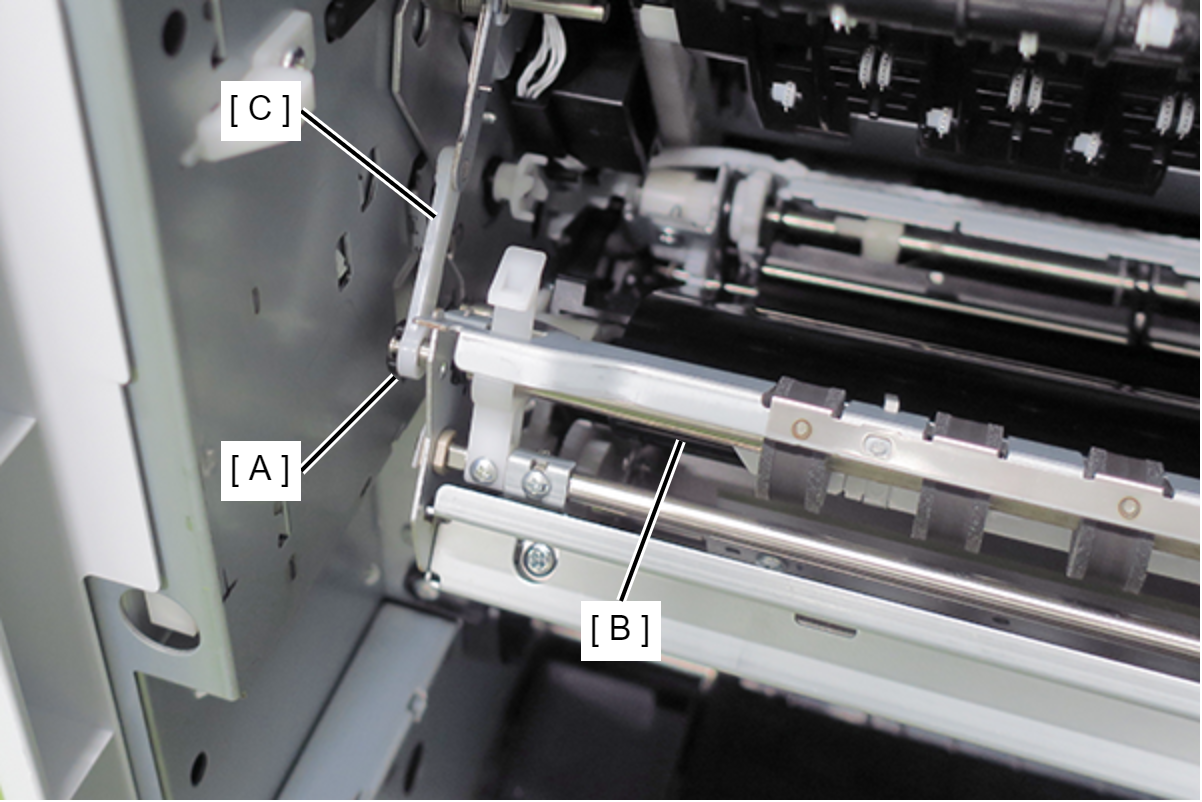 Caution / 注意拆下皮带臂(C)时,皮带单元(B)会掉落。