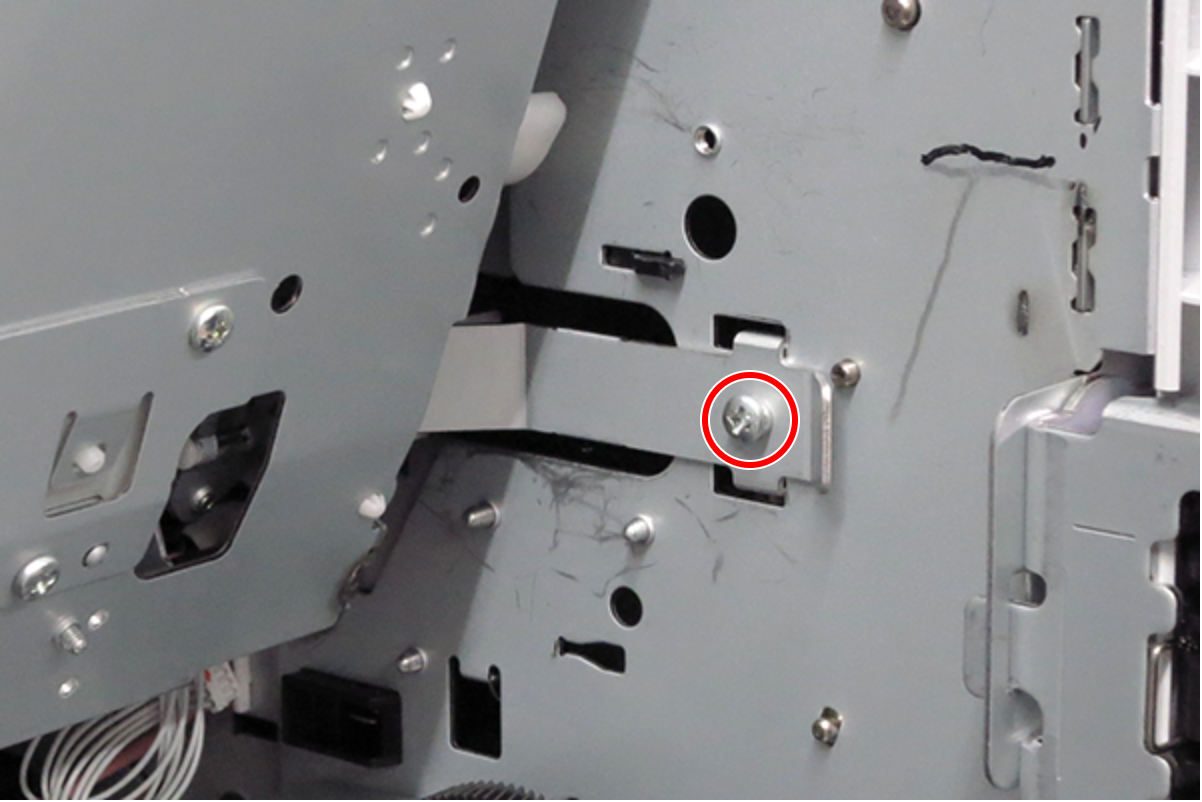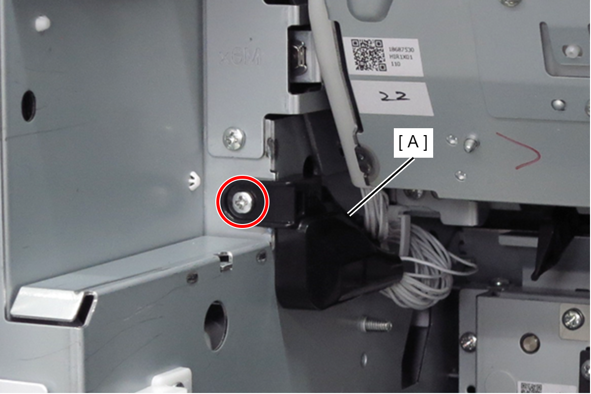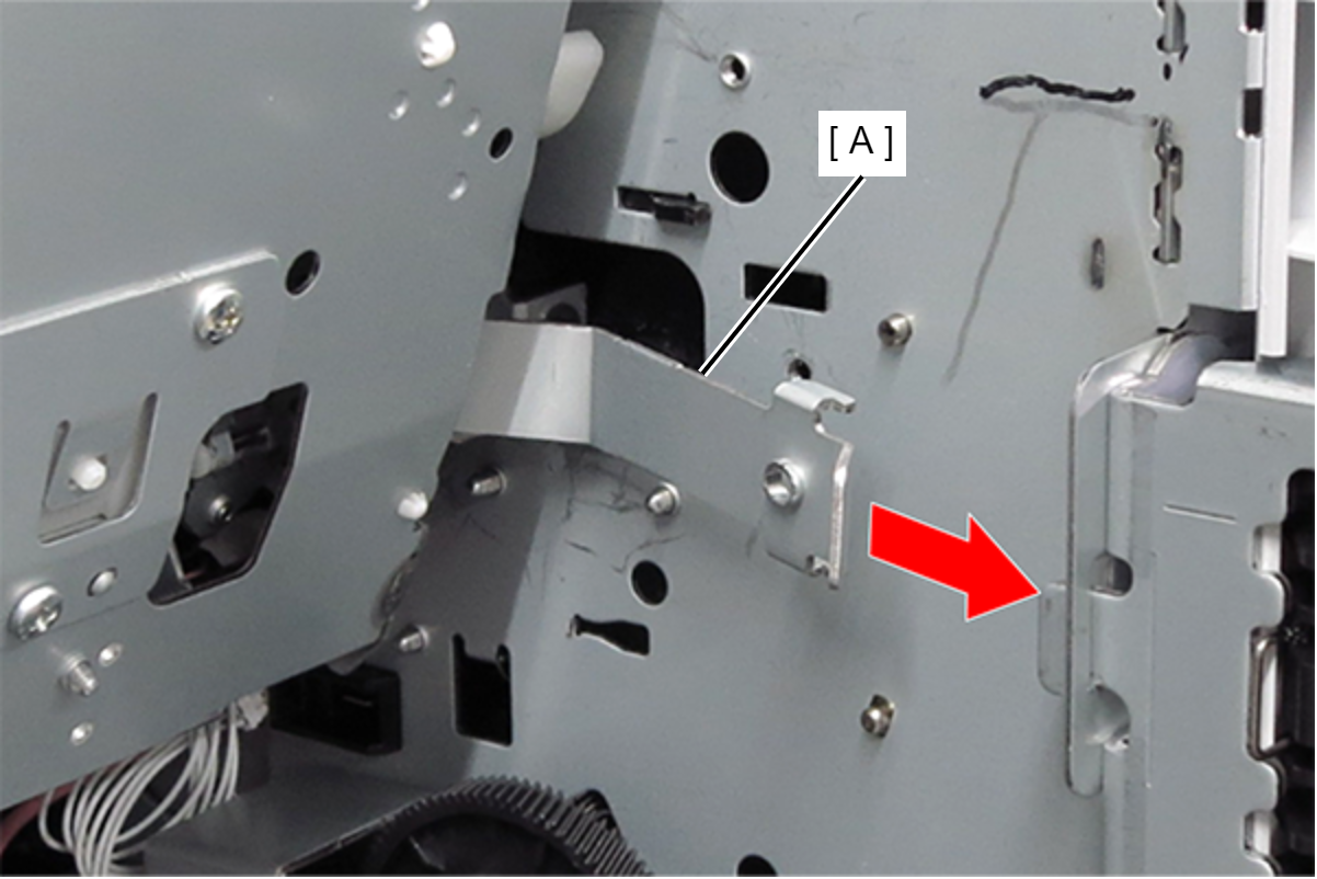 - 拆下两颗螺丝,然后朝自己的方向拆下左皮带支架(A)。(S9:
