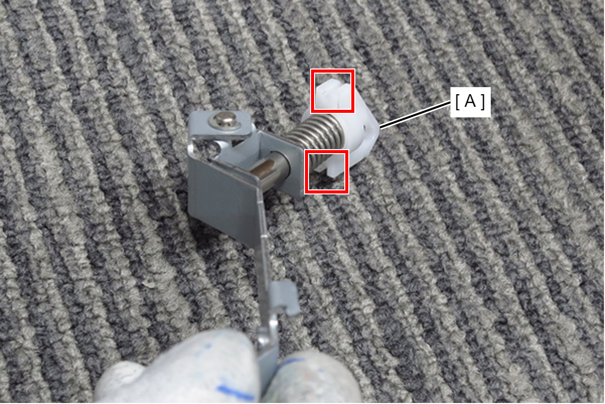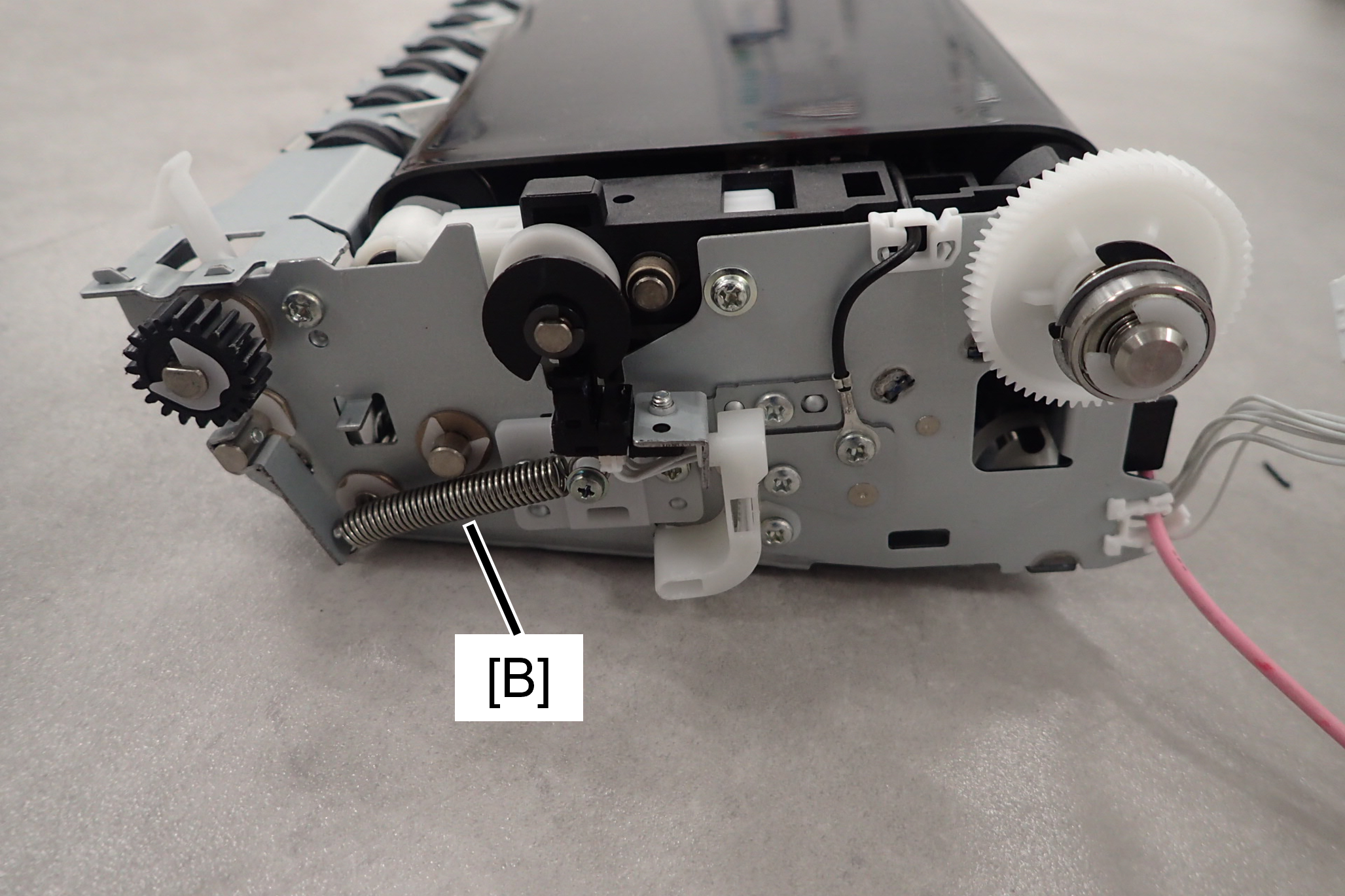 注意不要掉落皮带单元侧面的弹簧(B)将其弄丢。