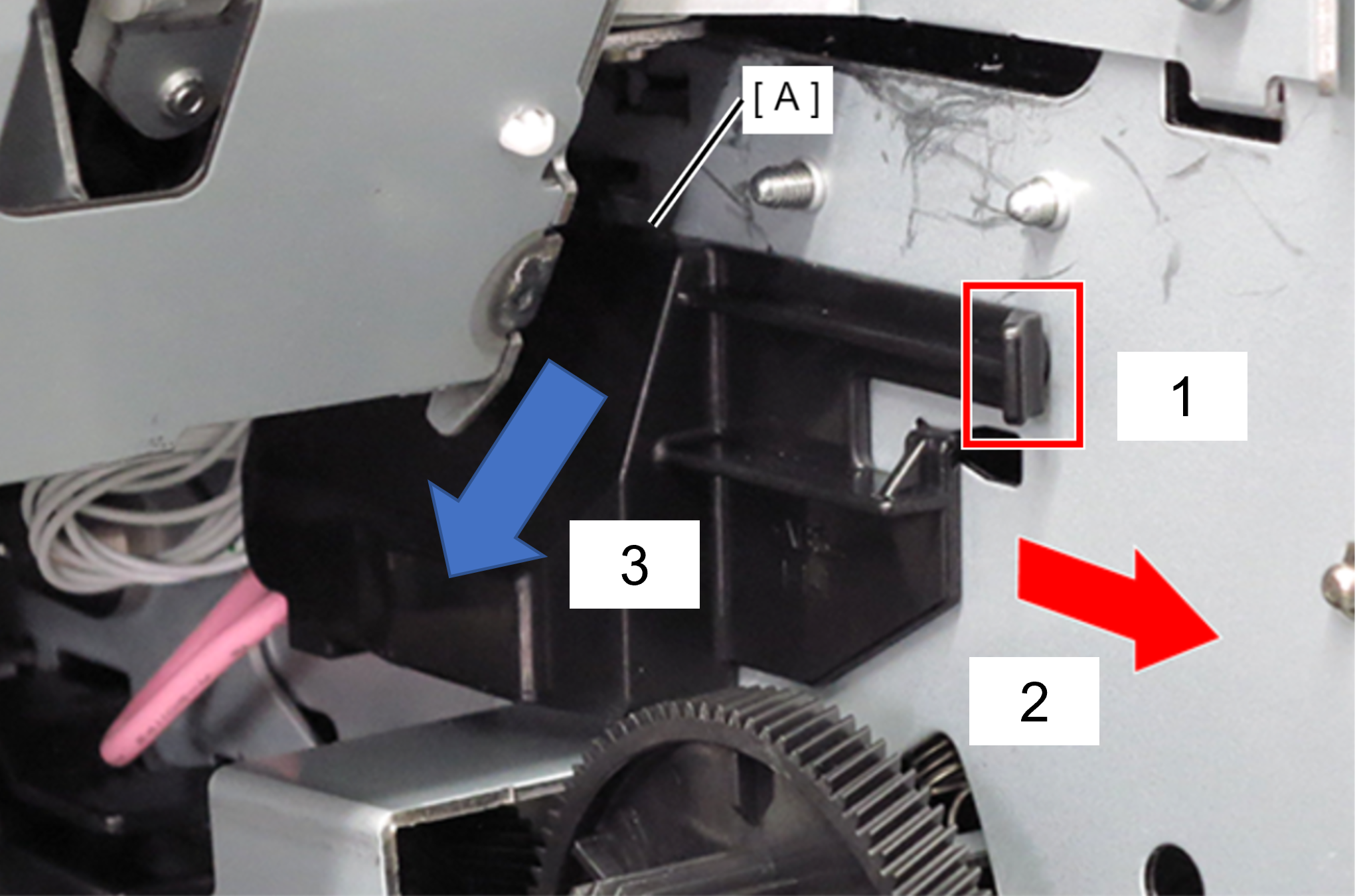 1.沿红色箭头方向滑动皮带支架(A)。