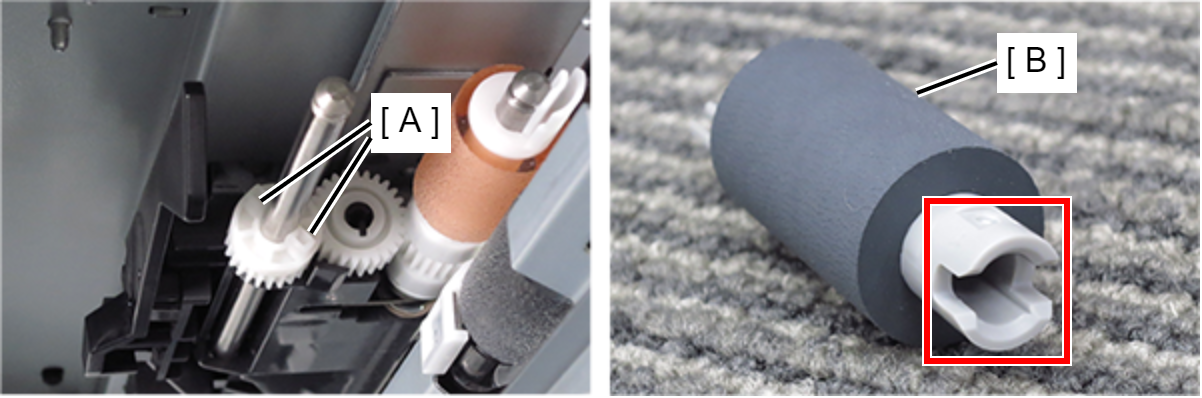 Assembly / 組み立て将齿轮的突出部(A)对齐搓纸辊(B)的凹槽。