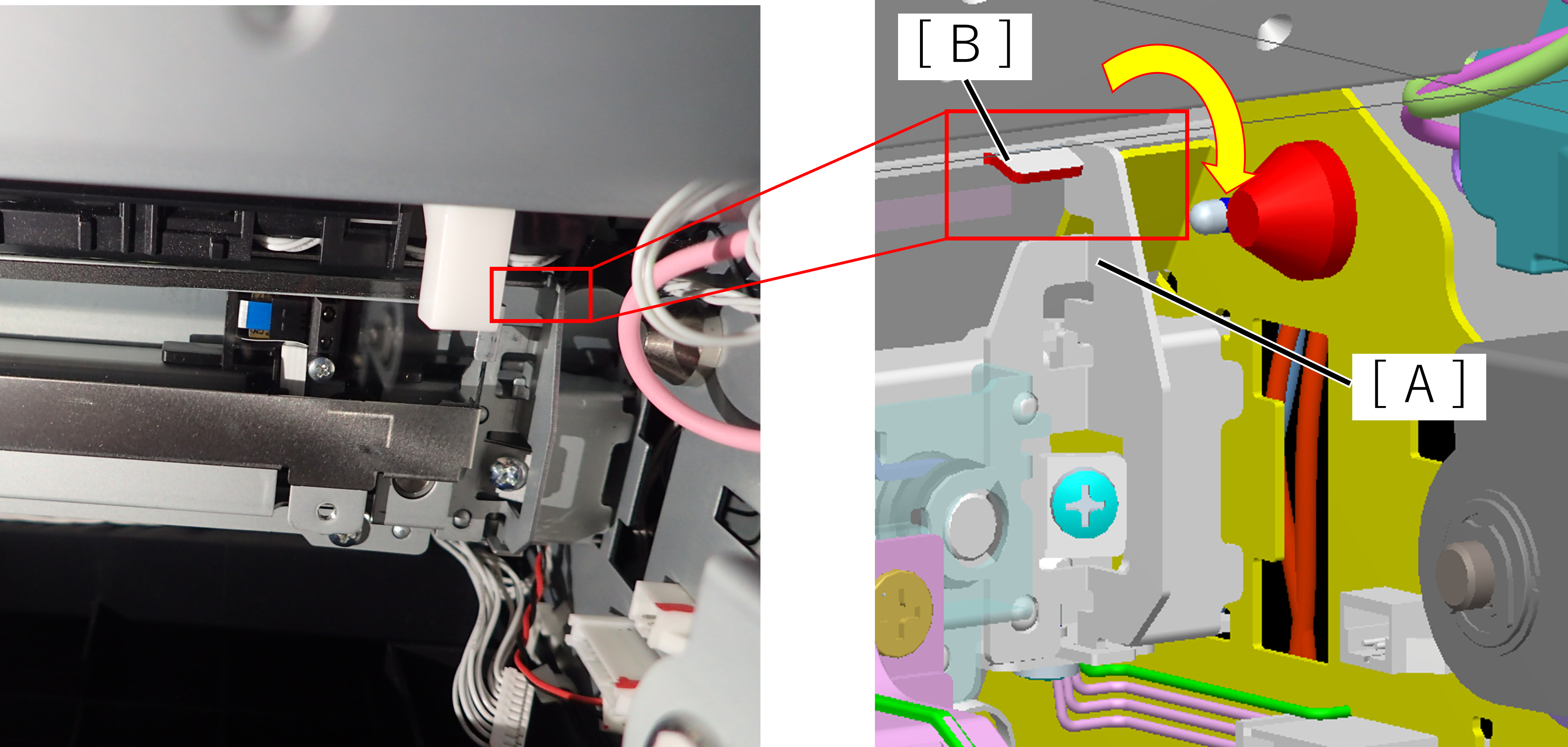 PW传感器的左侧和右侧通过一块板(A)和主机框架上的突出部(B)固定。 螺丝松开时,固定板会颤动,主机框架突出部和PW传感器可以释放。