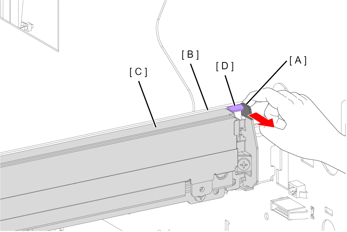 - 向前倾斜固定板(A),从卡扣(D)释放PW传感器单元(C)。