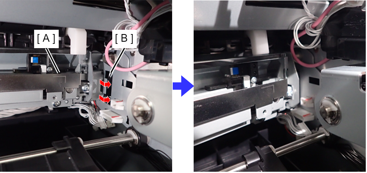 - 向自己的方向倾斜PW前导纸轨(A),将其提起并拆下。