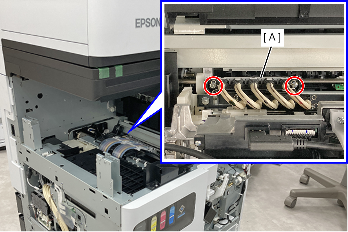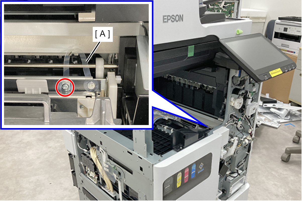 - 拆下固定FD收纸器组件(A)的4颗螺丝。(S1: