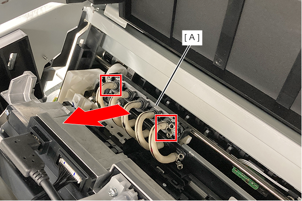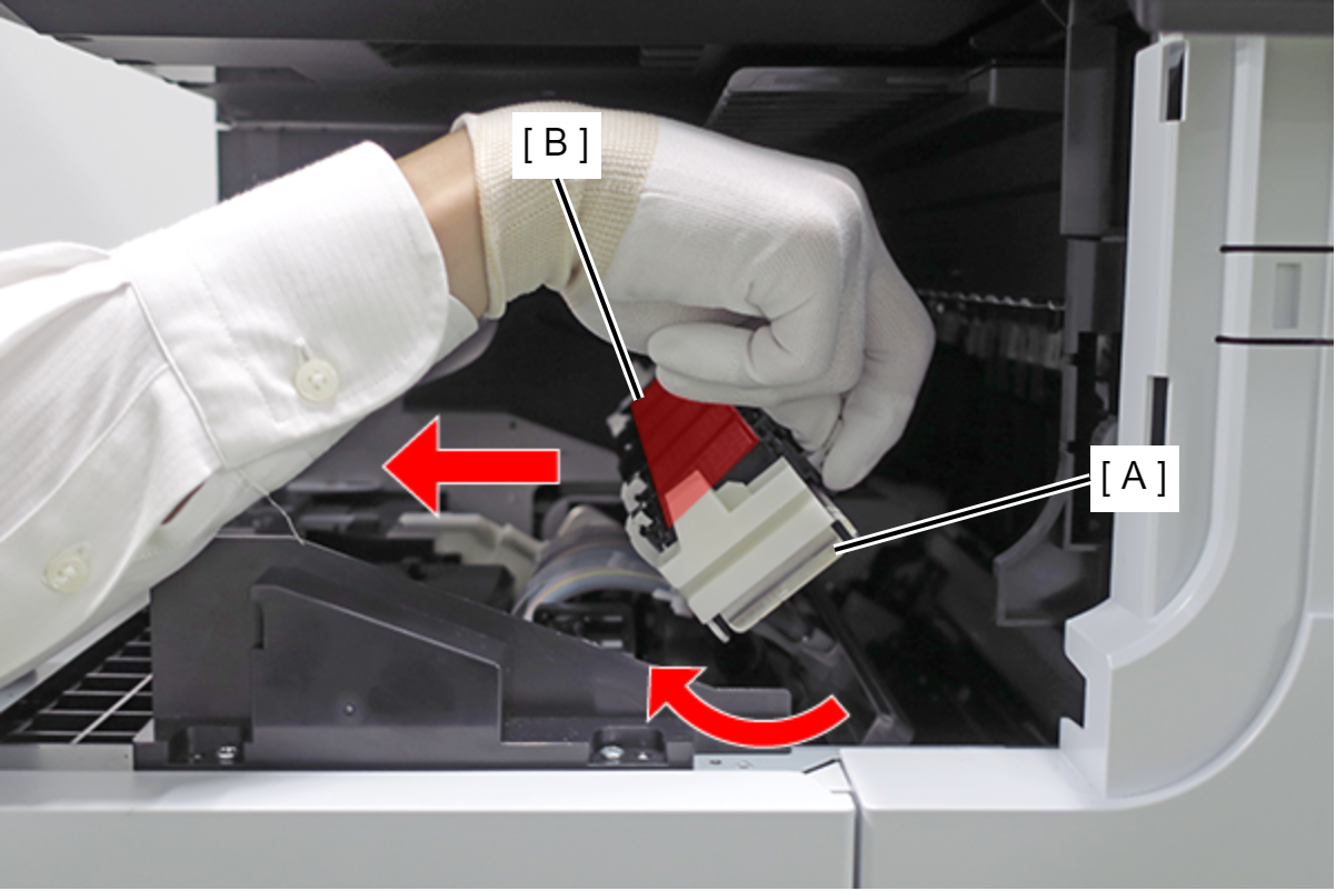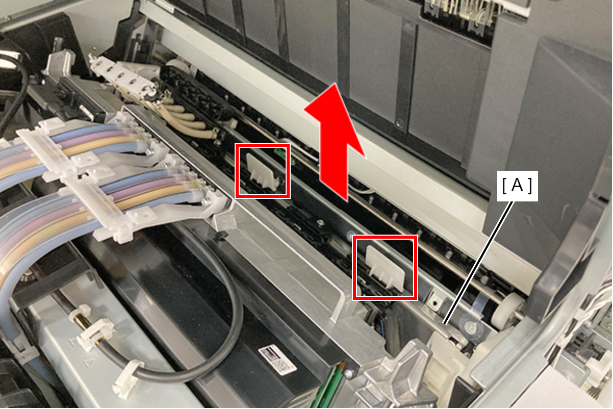 - 提起FD框架(A),释放两个卡钩,将其从产品左侧拆下。