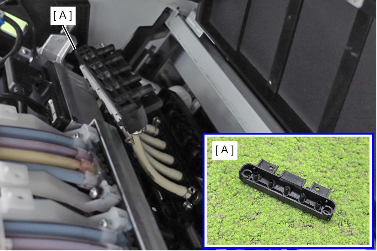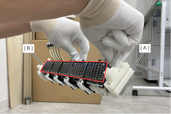 Caution / 注意不要让泵附件单元(A)的泵附件表面(B)朝下或倾斜泵附件单元,否则墨水可能滴出。
