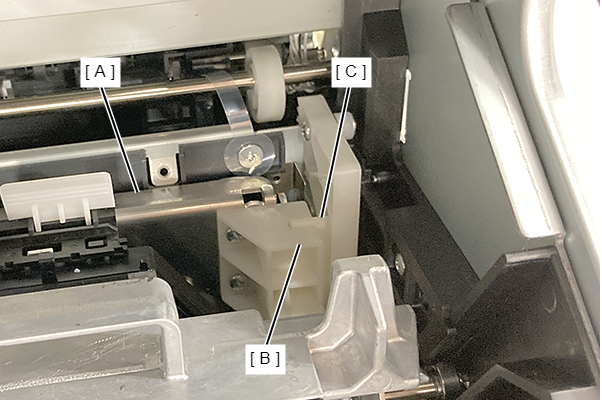 握住图中所示位置,拆下FD收纸器组件(A)。