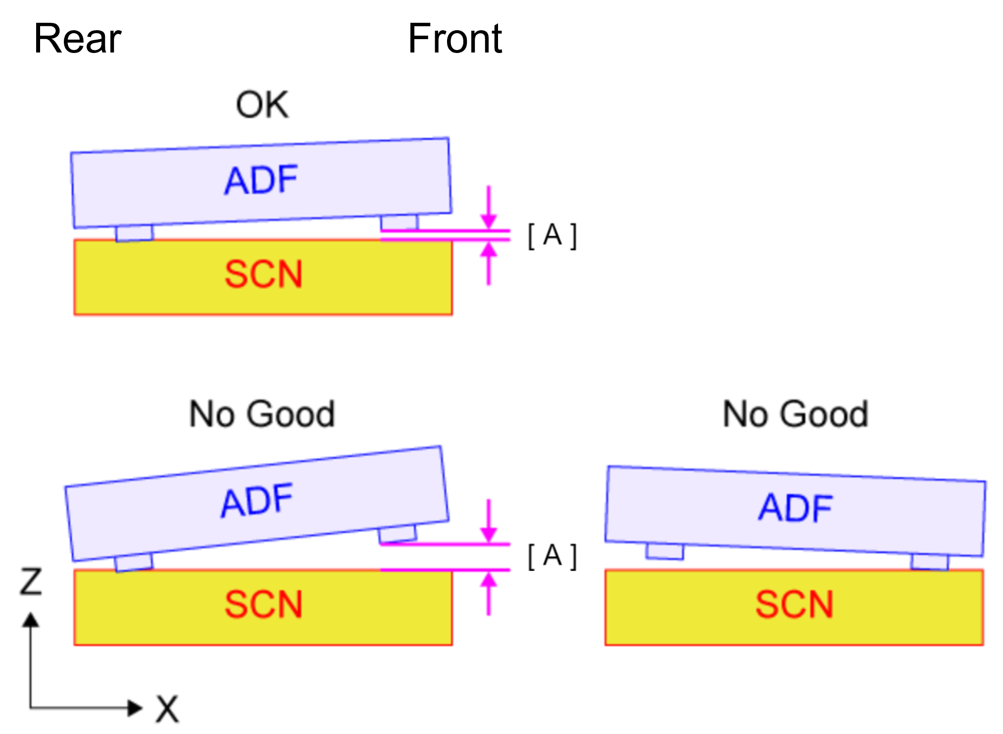 符号 情况 调整方法 A ADF单元向前侧移位。