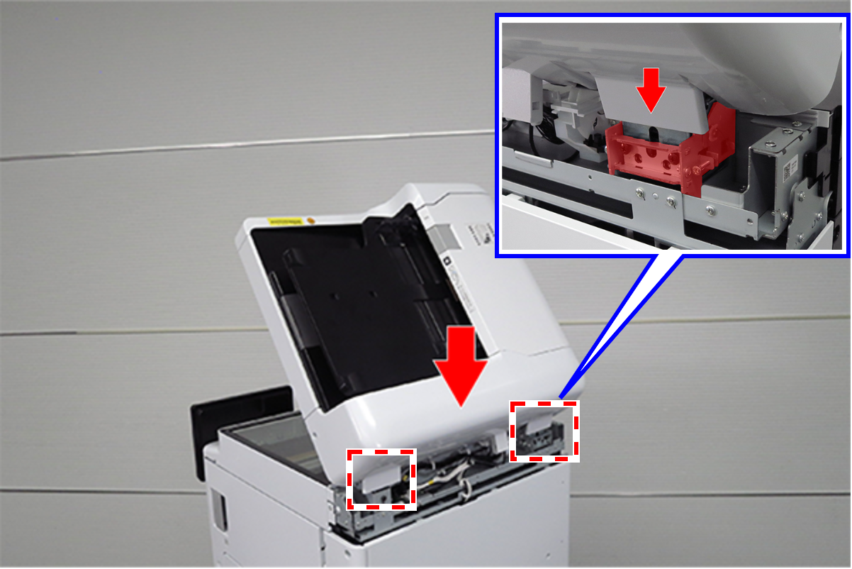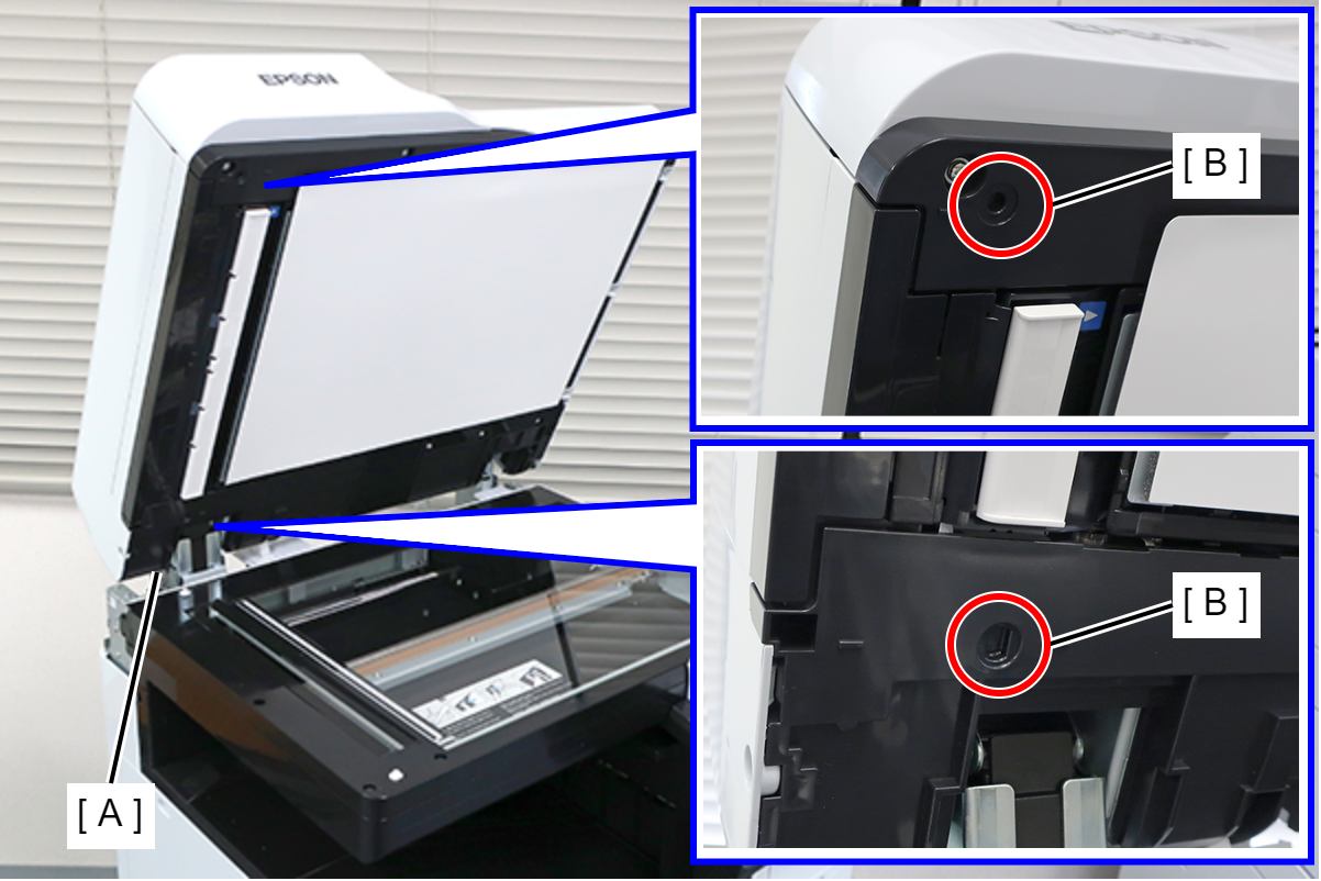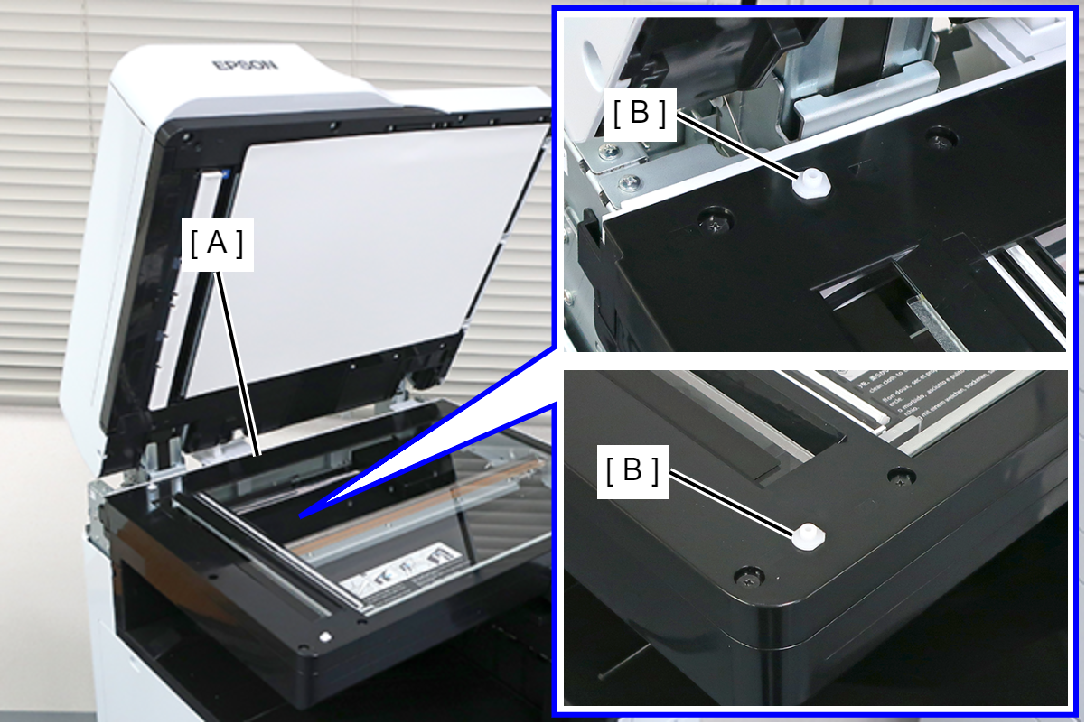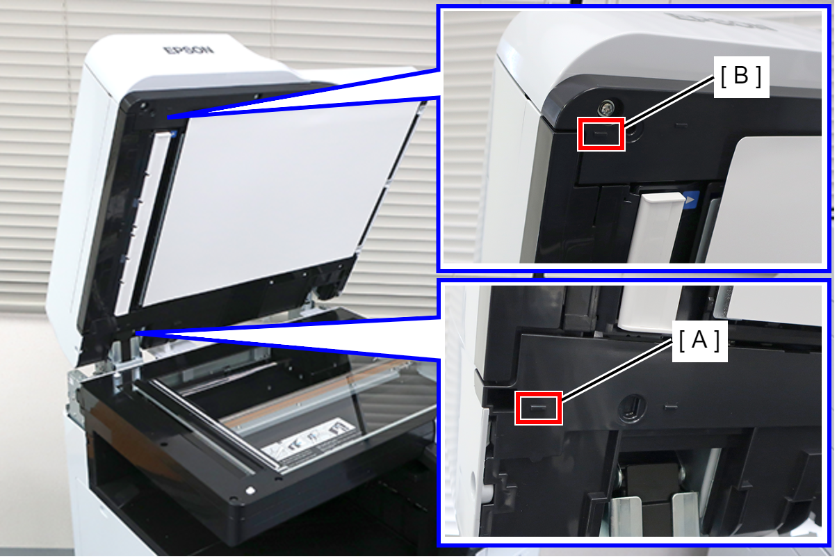 - 关闭ADF单元(A)后再重新打开,以反映高度调整框架的调整值。