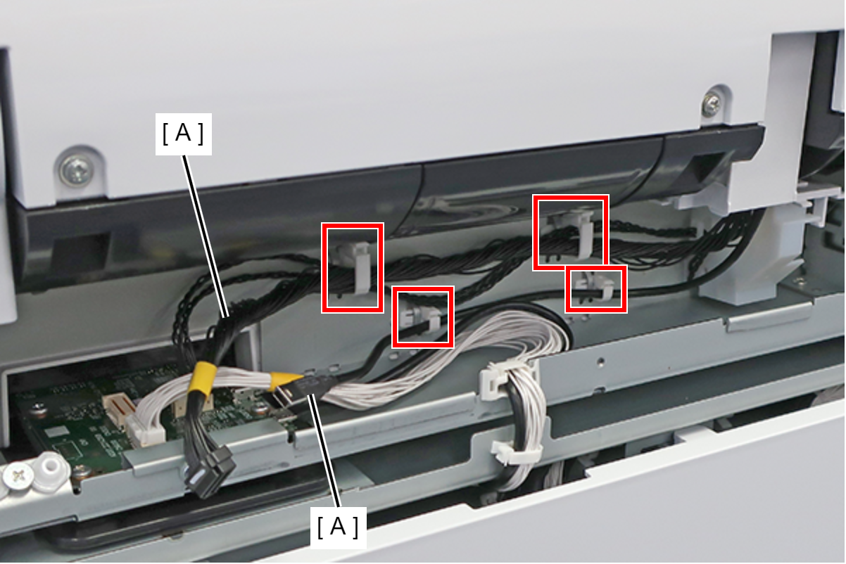 - 从四个卡箍释放两根电缆(A)。