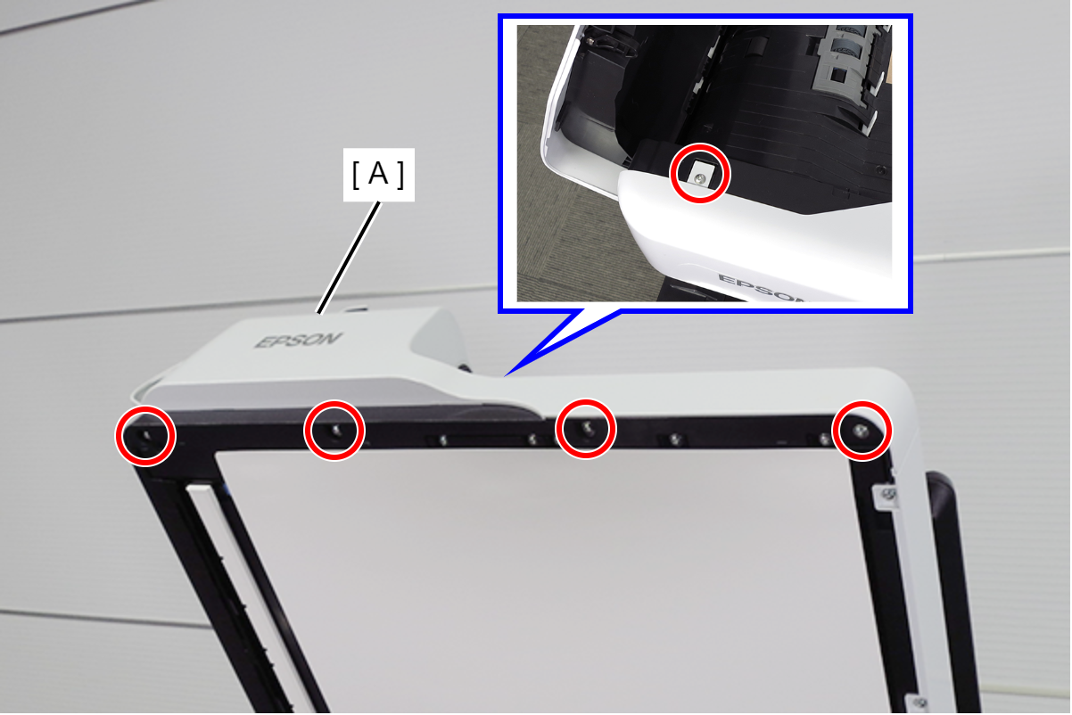 - 拆下5颗螺丝,然后拆下ADF前盖(A)。(S7: