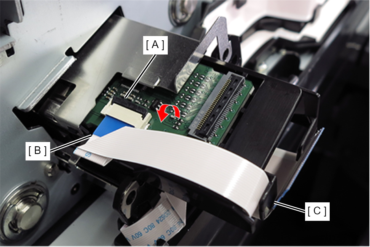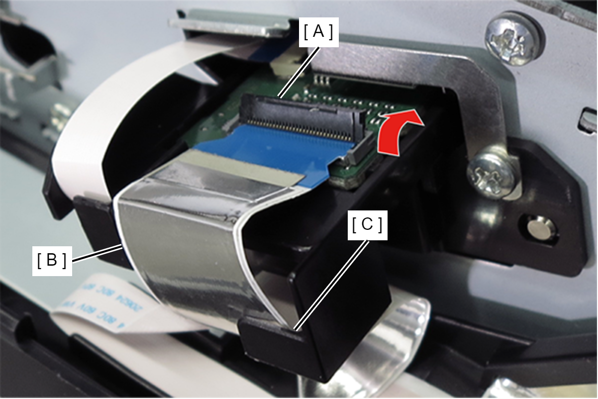 - 释放连接器锁(A),从连接器拆下FFC(B)。