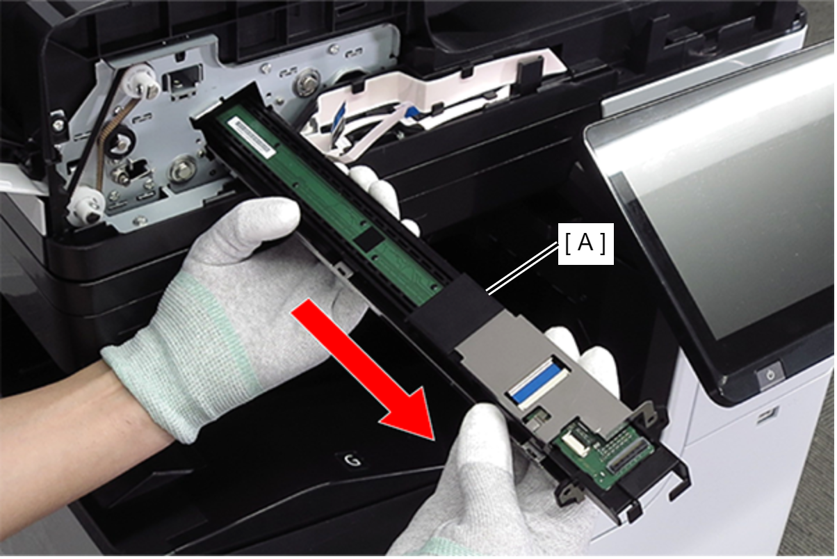 - 拆下2颗螺丝,轻轻拉出ADF CIS模块(A)。(S31: