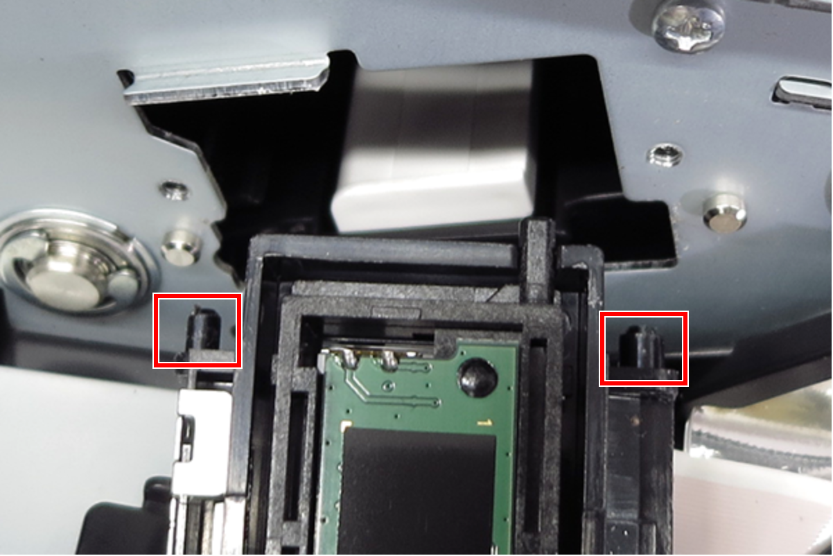 - 将框架上的两个定位销对齐ADF CIS模块(A)上的两个定位孔。