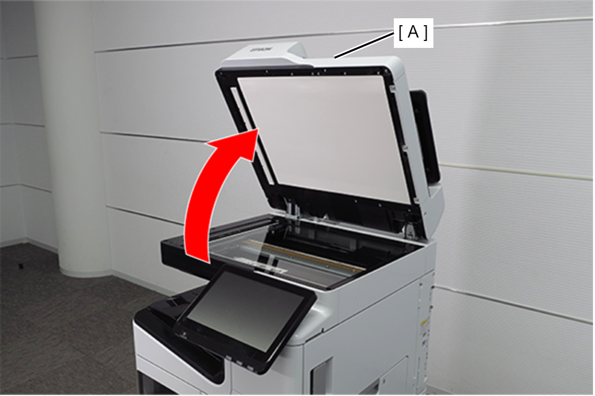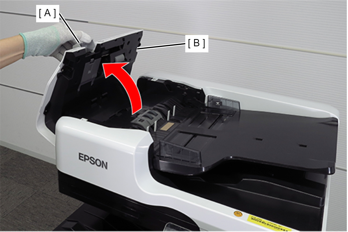 - 在拉控制杆(A)时打开ADF盖(B)。