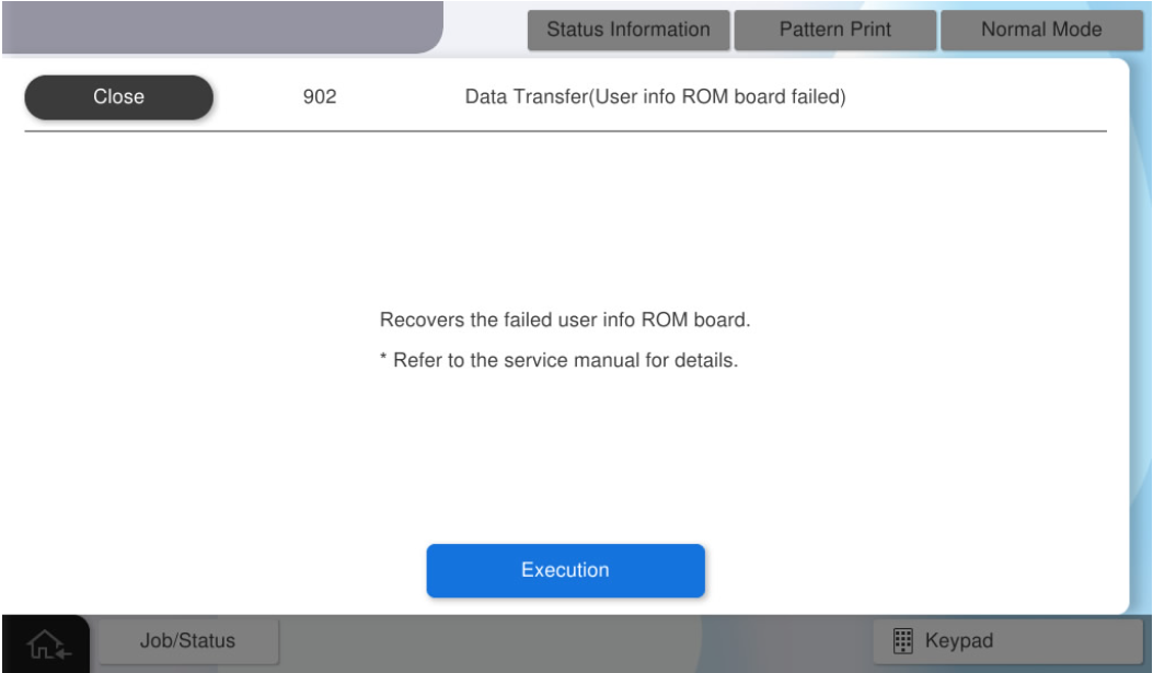 - 选择 [902 Data Transfer(User info ROM board failed)](902数据传输(用户信息ROM板故障))。