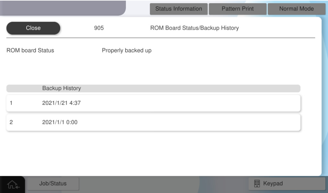选择 [905 ROM Board Status/Backup History](905 ROM板状态/备份历史记录)。