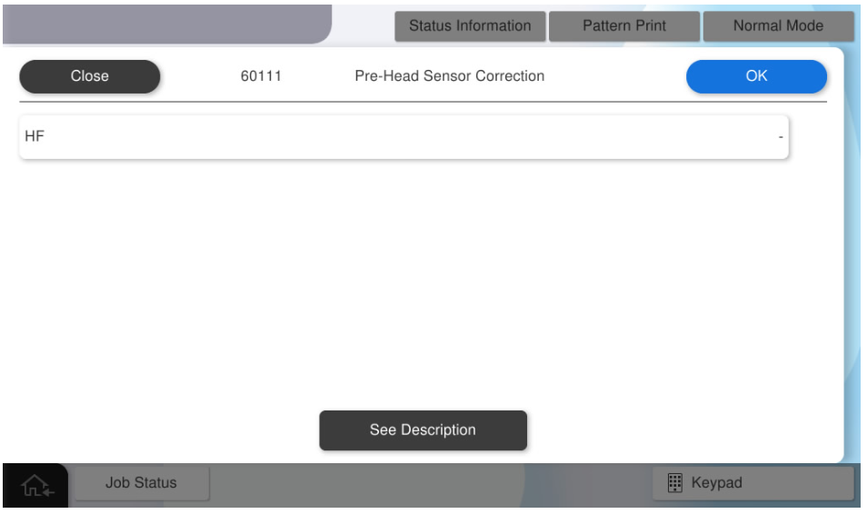 - 选择[60111 Head Front Sensor Correction](60111打印头前传感器校正)。