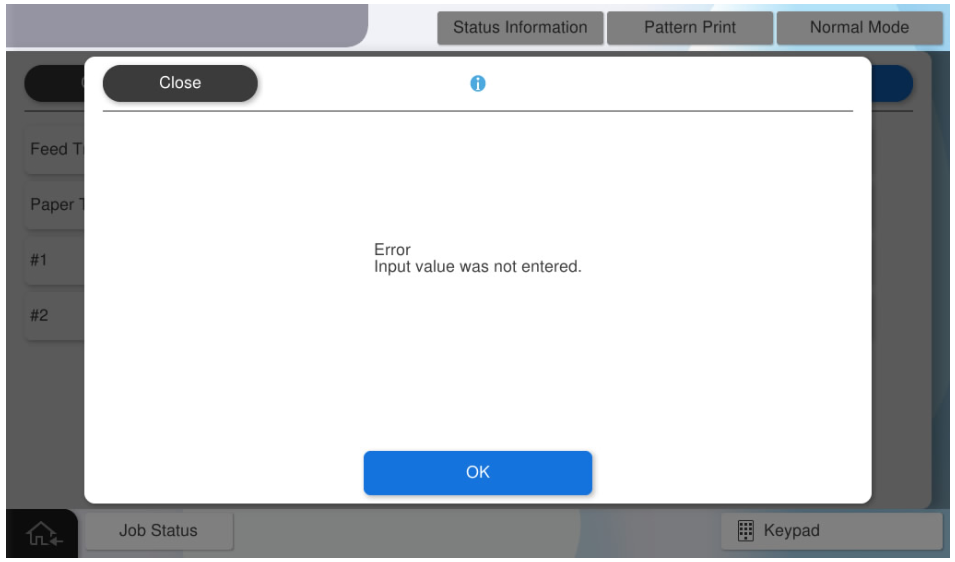 - 如果在未输入所有值的情况下按[OK](确定),将显示以下屏幕。