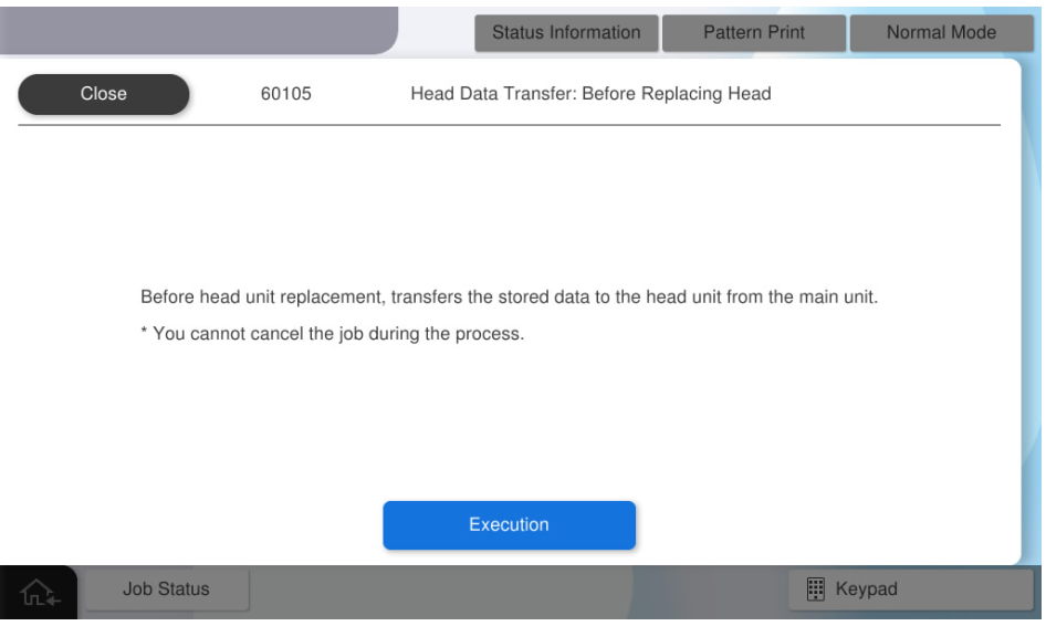 - 选择[60105 Head data transfer:Before Replacing Head](60105打印头数据传输:更换打印头前)。