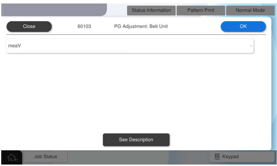 - 选择[60103 PG Adjustment:Belt Unit](60103 PG调整:皮带单元)。