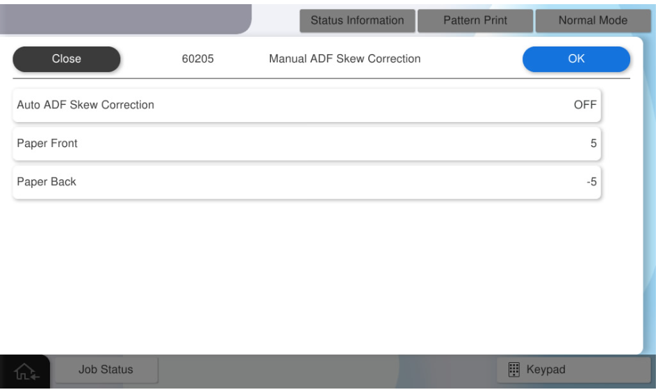 - 选择[60205 Manual ADF Skew Correction](60205手动ADF歪斜校正)。