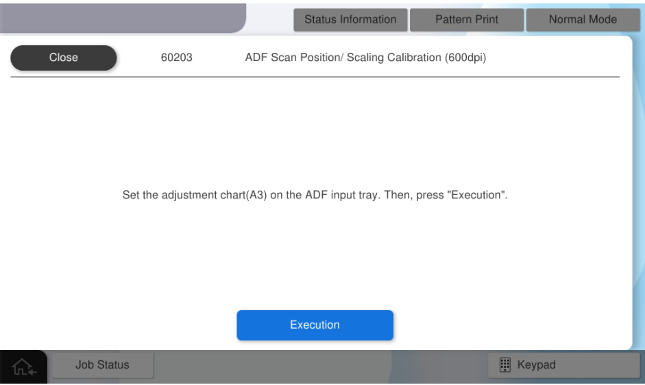 - 在ADF托盘上设置表,然后按[Execution](执行)。