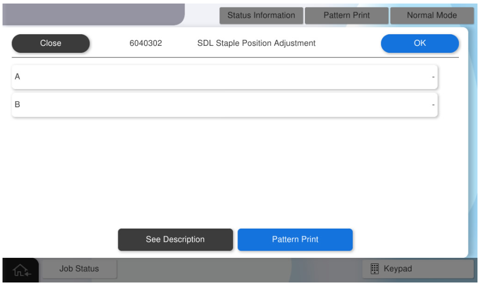 - 选择[6040302 Saddle Stitch Staple Position Adjustment](6040302鞍式装订装订位置调整)。