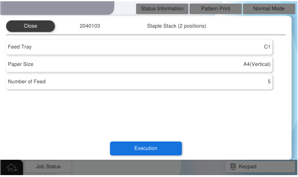 可设置参数如下。设置项目 选择 进纸托盘 C1、C2、C3、C4、手动进纸器、大容量进纸器 可用纸张大小 A4(纵向)、Letter(纵向)、A3、Ledger 张数 5(固定) - 按下[Execution](执行)输出调整样本。