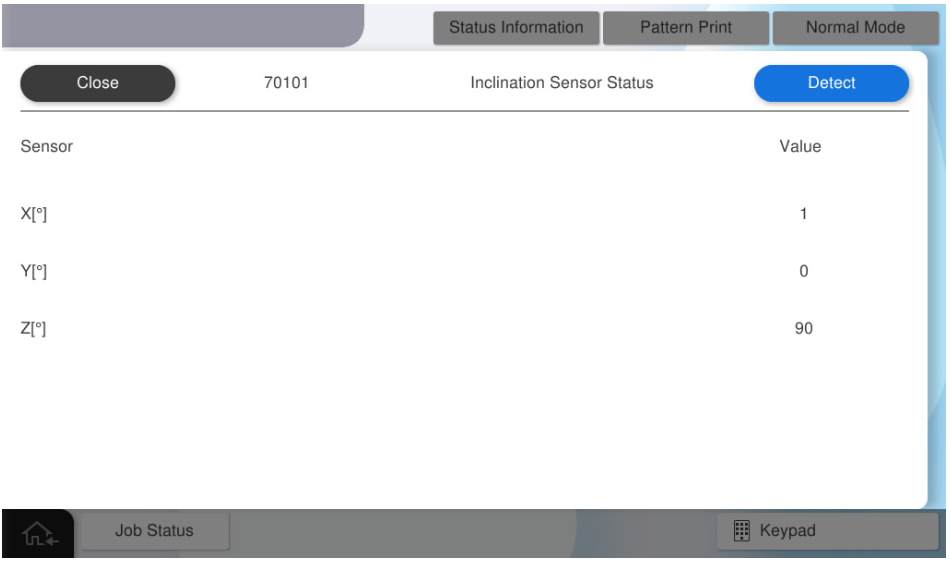 传感器倾斜检测完成时,显示检测值。