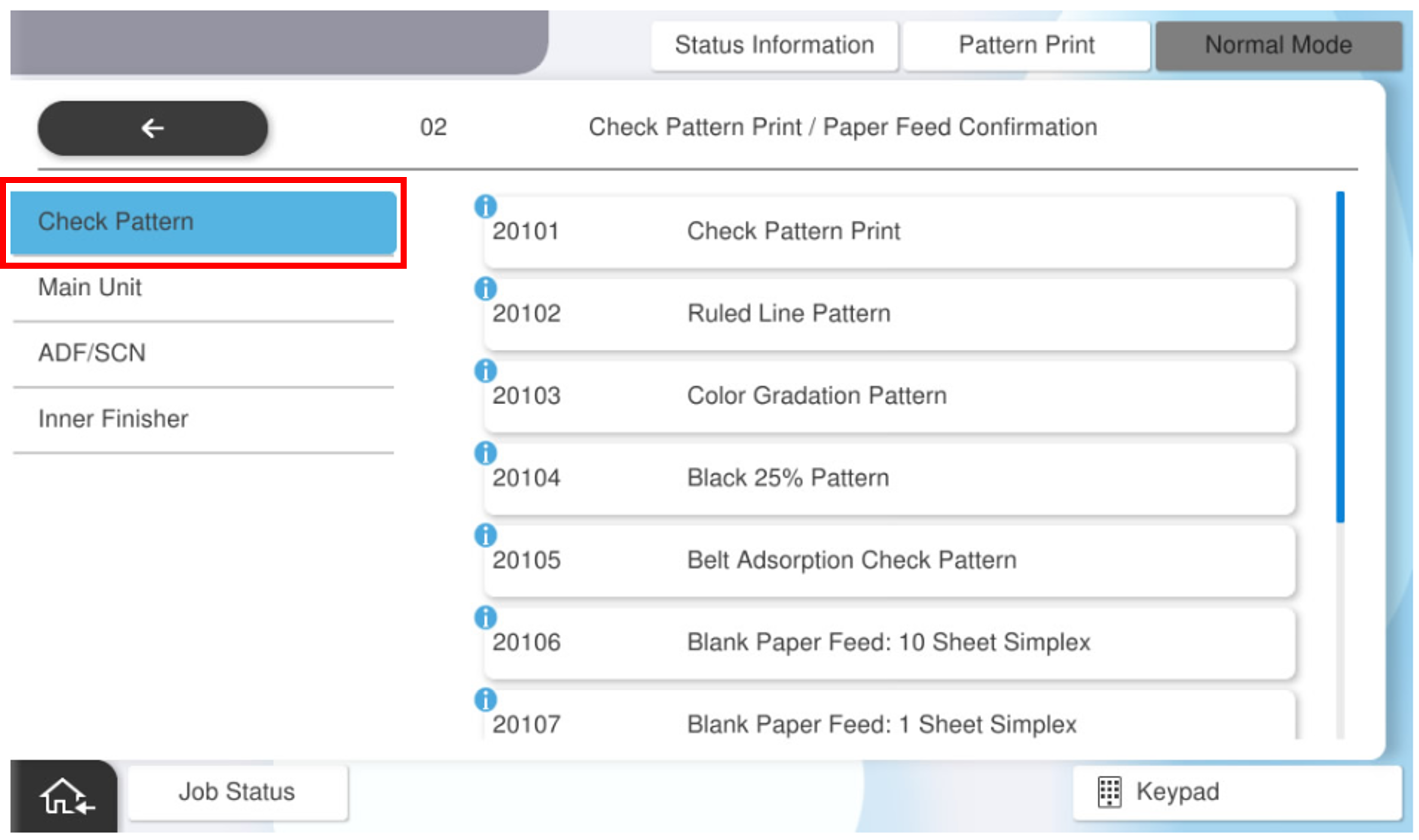 - 选择[Check Pattern Print](检查图案打印)选项卡。
