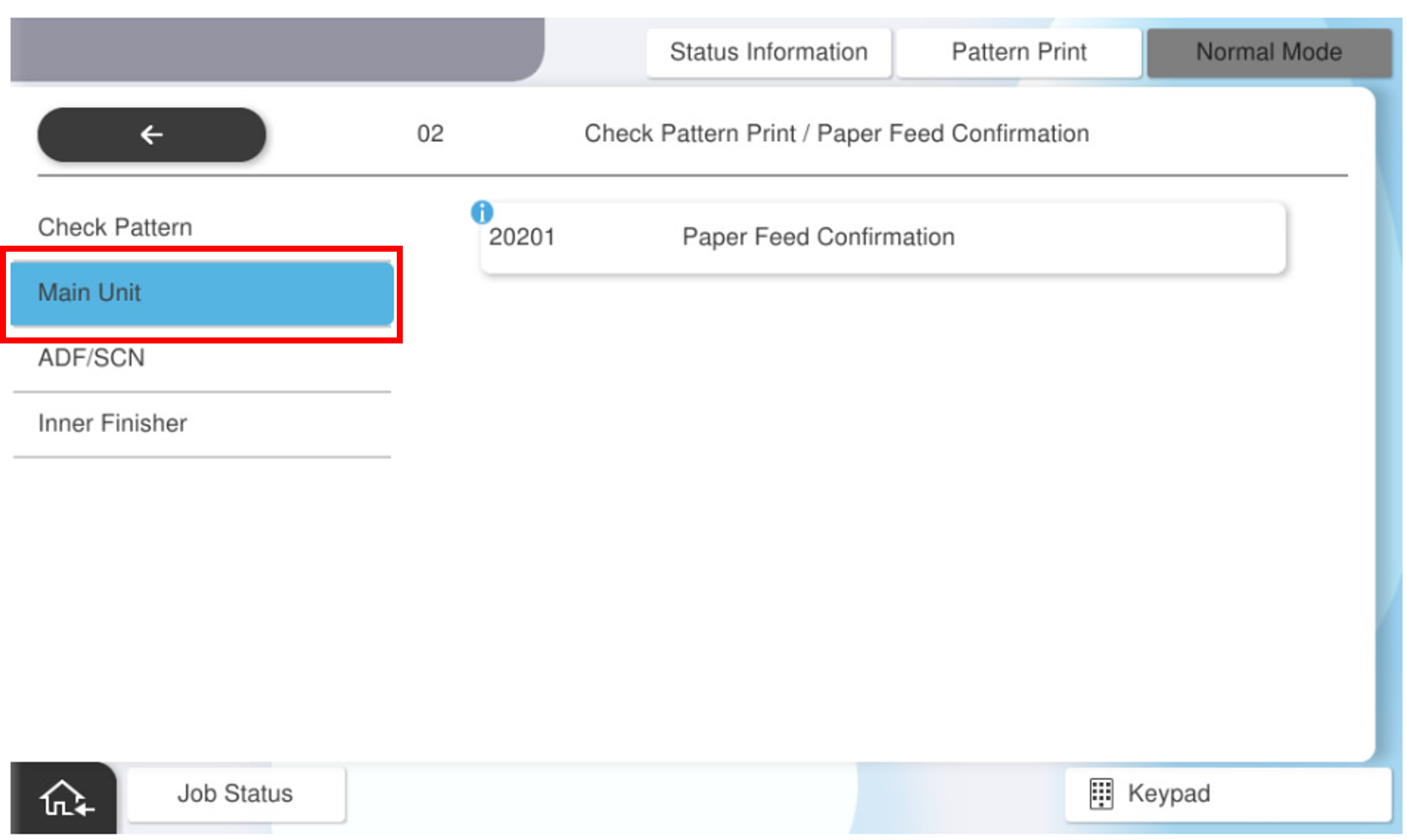 - 选择[02 Check Pattern Print / Paper Feed Confirmation](02检查图案打印/进纸确认)。