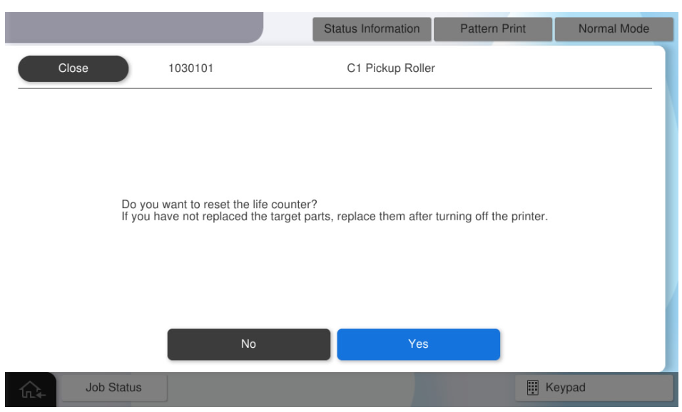 - 按下[Yes](是)重置计数器。