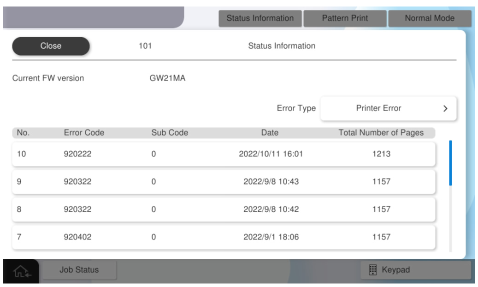 在操作面板上显示状态信息(固件版本和错误历史记录)。