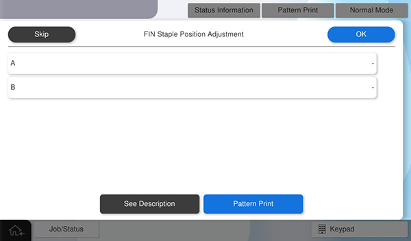 Check Point / チェックポイント通过按[Pattern Print](图案打印)按钮反映调整值。请注意,按[OK](确定)也会反映调整值,但会转换到之前一级的菜单屏幕。